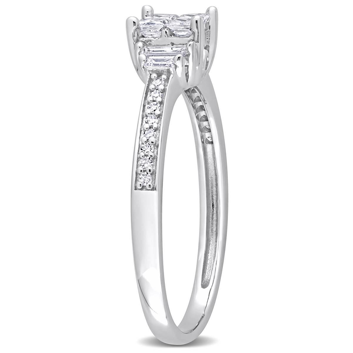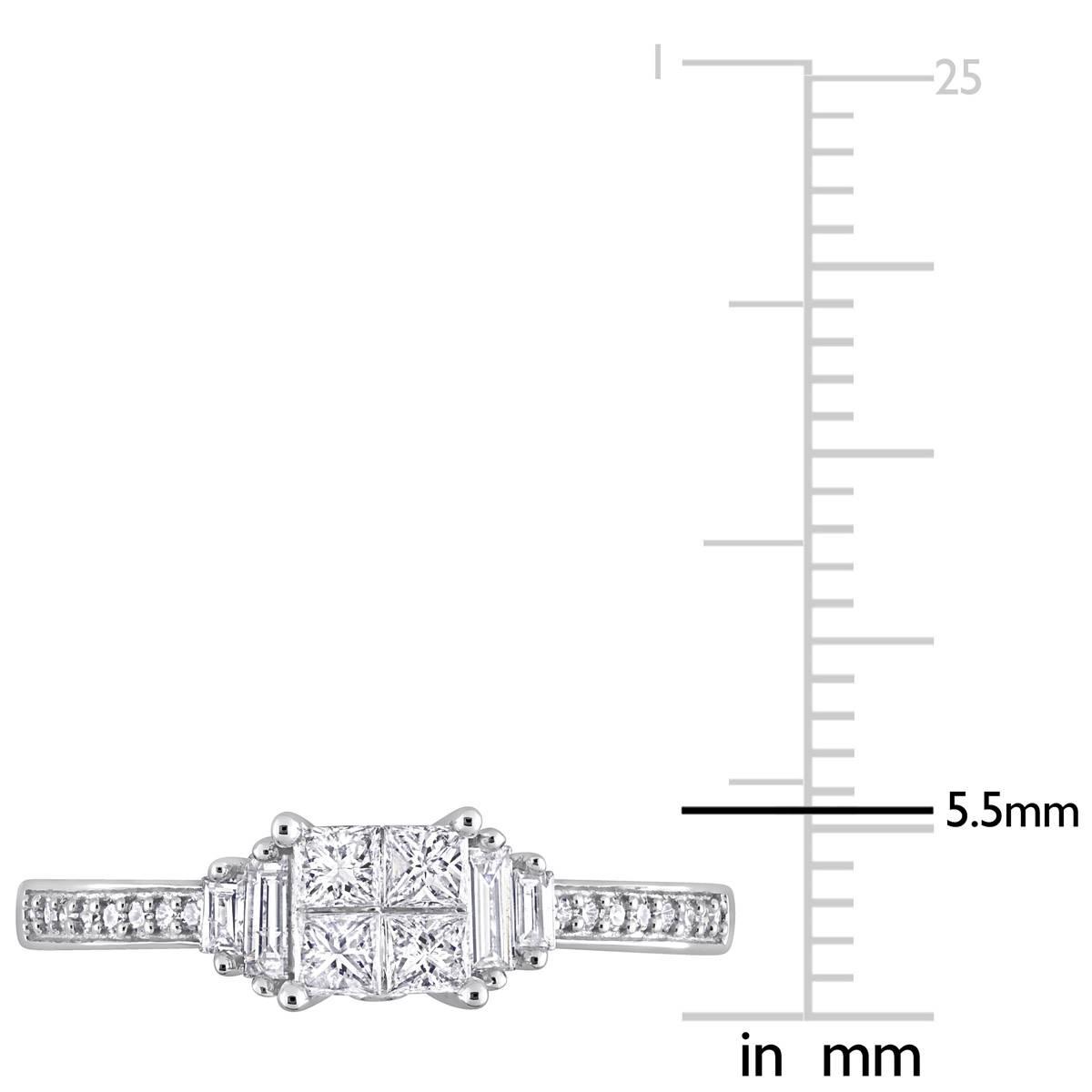 Get on your knees and ask her to be your partner by proposing with this Diamond Classics™ 14kt. white gold 1/2ct. diamond quad ring. Features four princess-cut, invisible-set dazzling diamonds in a quad arrangement surrounded by four parallel baguette-cut diamonds. The perfect way to express your love.