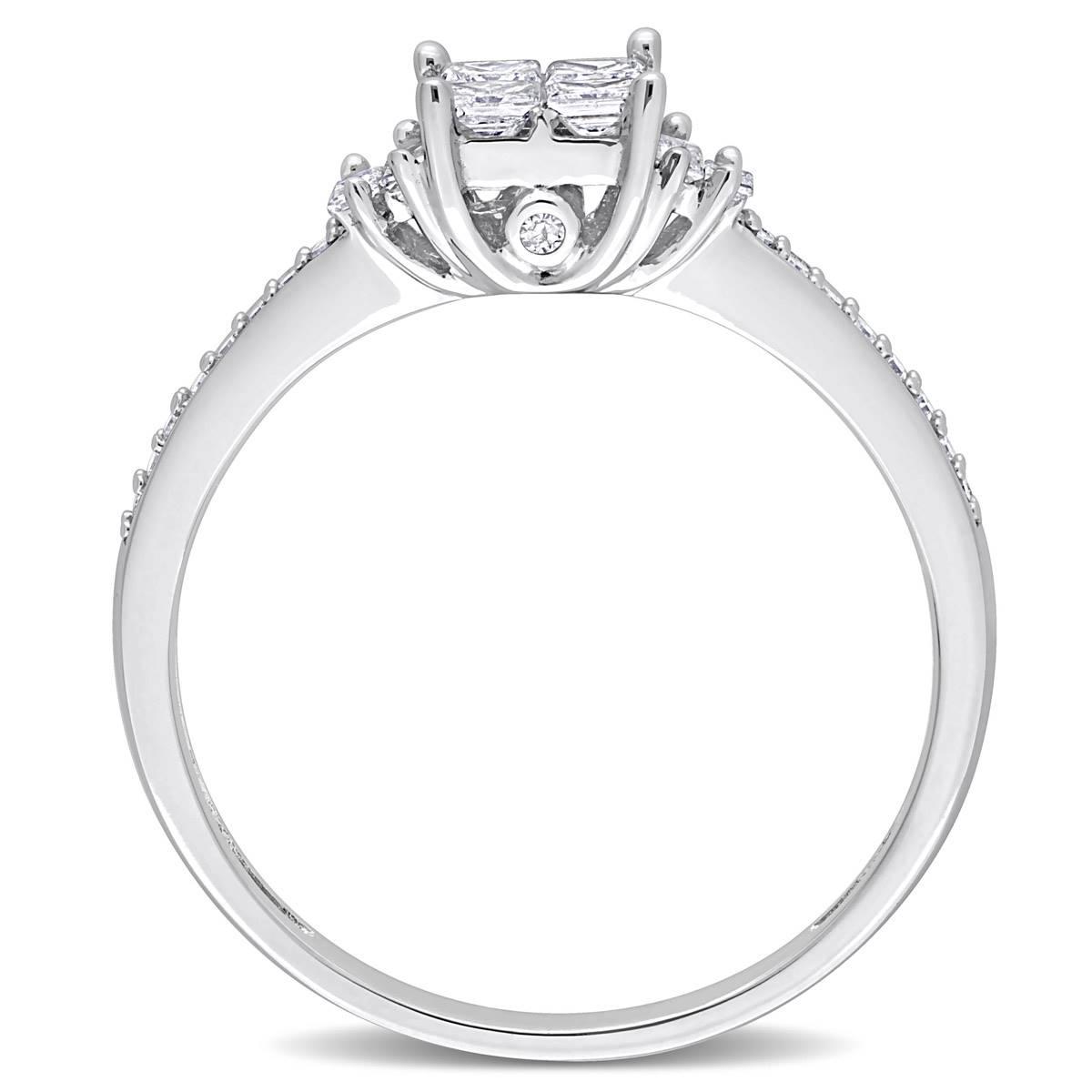 Description Get on your knees and ask her to be your partner by proposing with this Diamond Classics™ 14kt. white gold 1/2ct. diamond quad ring. Features four princess-cut,...