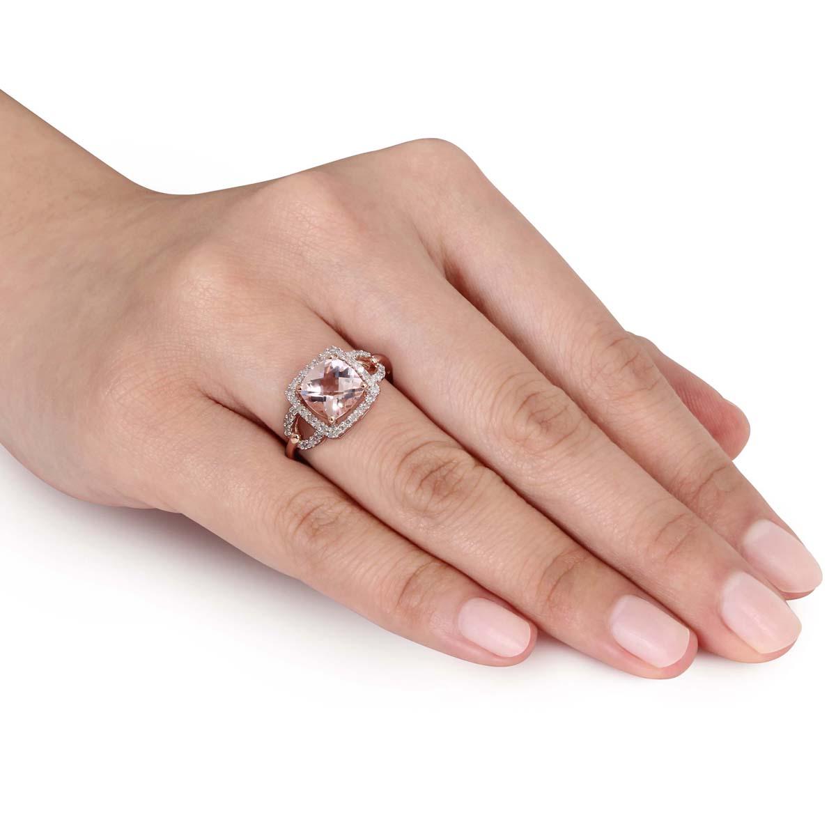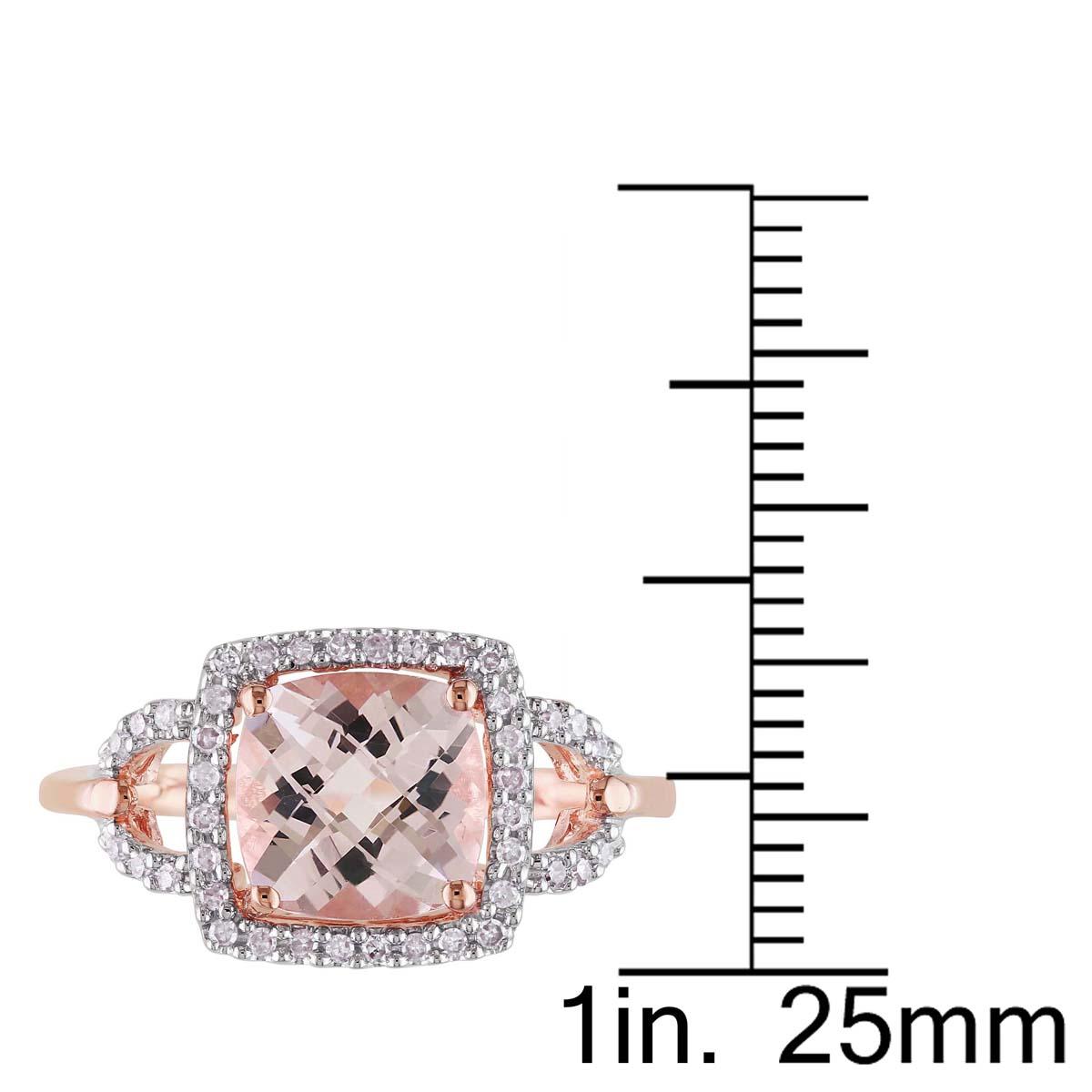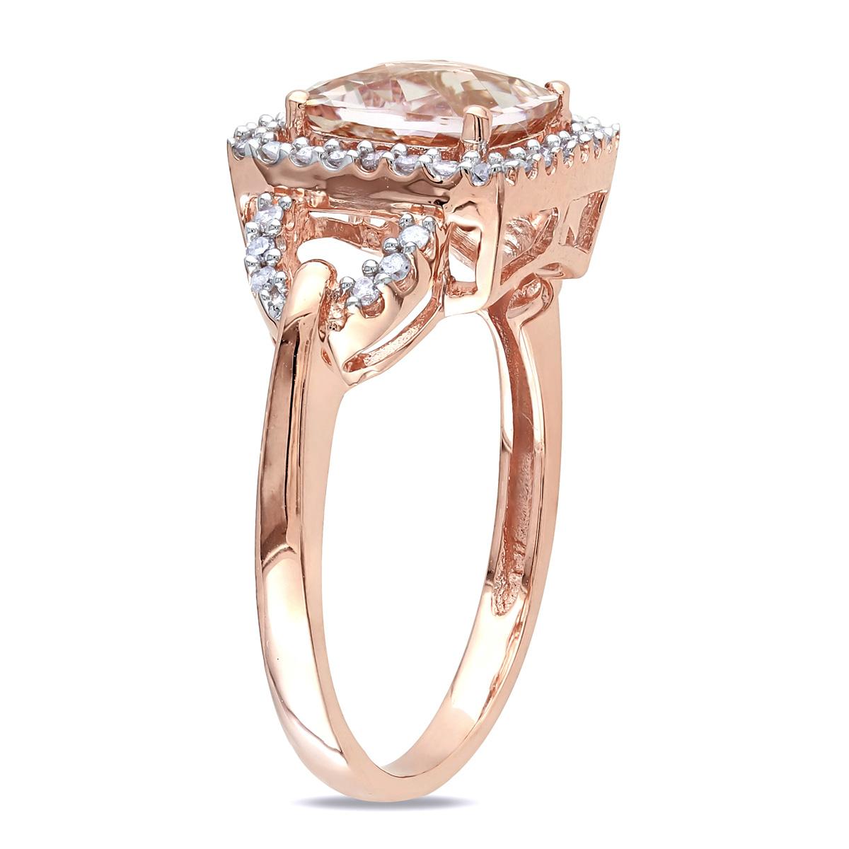 Description This graceful Gemstone Classics™ 10kt. rose gold diamonds morganite halo ring features a cushion-cut morganite center stone with diamond side stones set in 10kt....