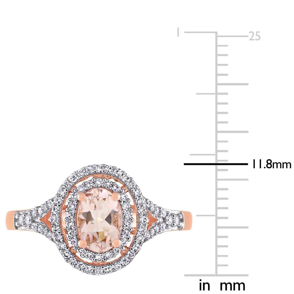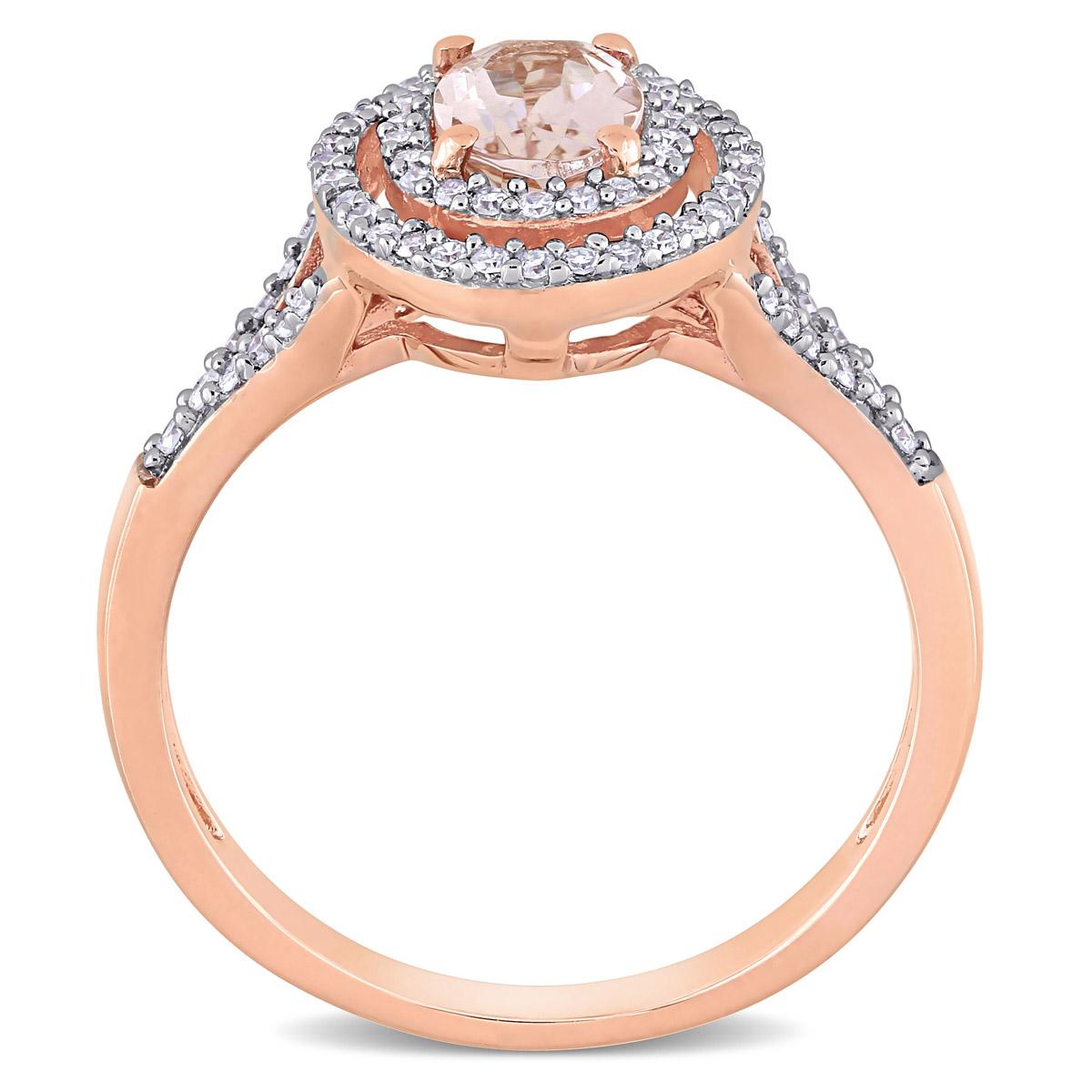 Description This bold and bright Gemstone Classics™ morganite and diamond halo ring is crafted in lustrous 14kt. rose gold and features an oval-cut, prong-set morganite at the...