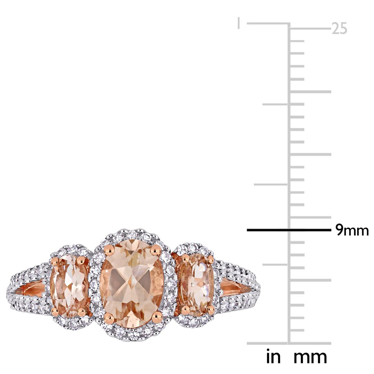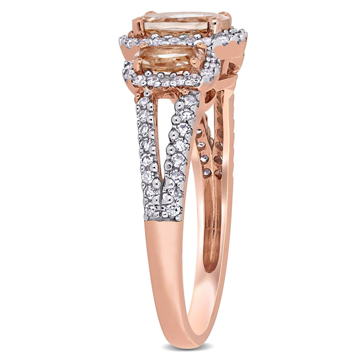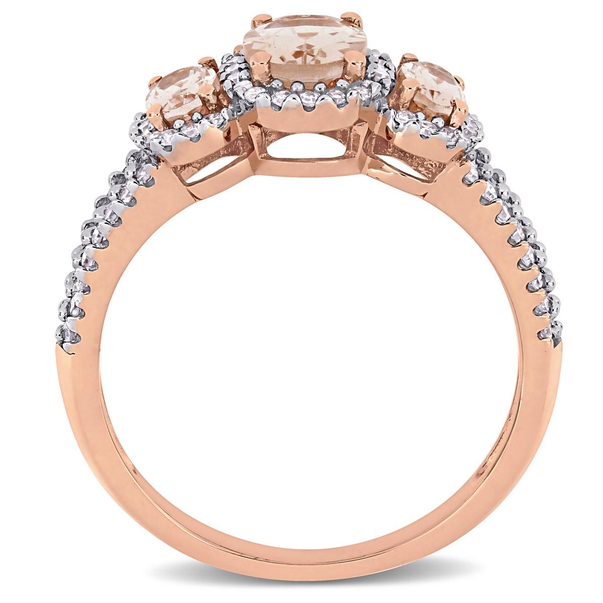 Description This bold and bright Gemstone Classics™ morganite and diamond ring is crafted in lustrous 14kt. rose gold and features three oval-cut, prong-set morganites at the...