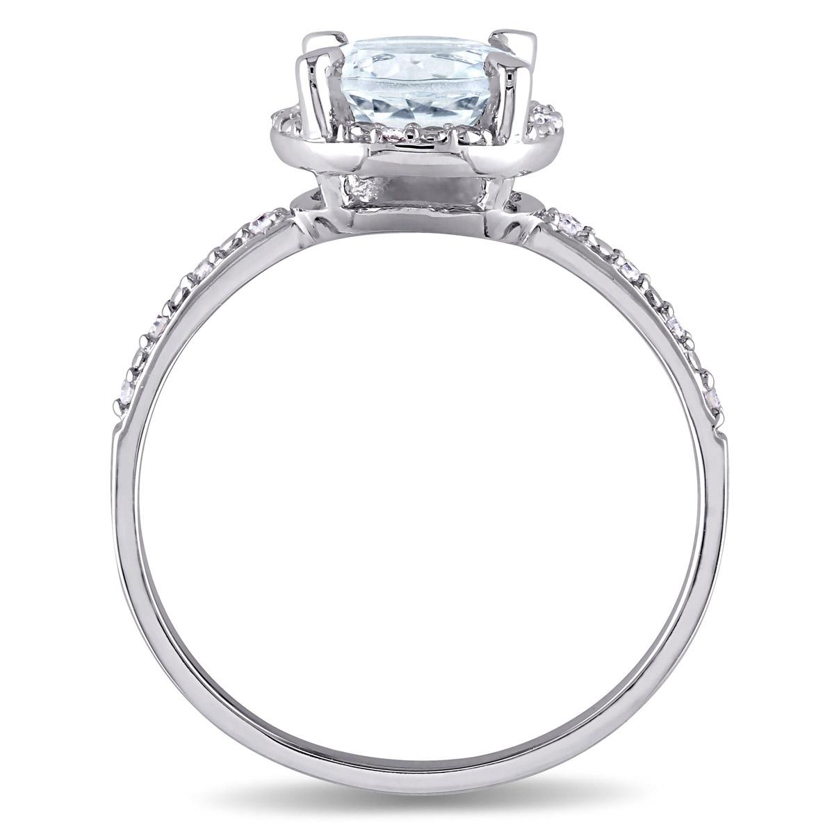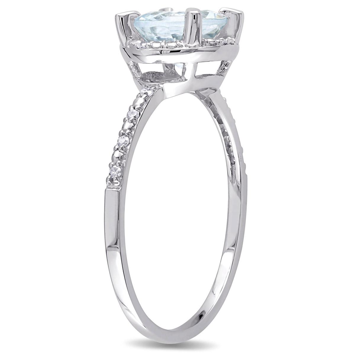 Description This dainty Gemstone Classics™ aquamarine and diamond halo ring is crafted in lustrous 10kt. white gold and features a round-cut, prong-set aquamarine at the center...