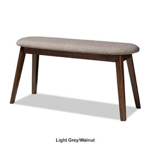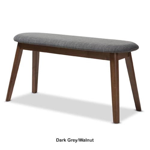This Baxton Studio Easton wood bench is refined and the final piece of furniture you´ve needed to tie your room together. The mid-century modern inspired design is evident in the gracefully tapered, angled legs of the bench. It is made to last with a sturdy, solid walnut finished rubberwood frame and the top is foam padded for comfortable seating, and upholstered. This dynamic bench will look fantastic at your dining table, or even in your living room and other shared spaces.