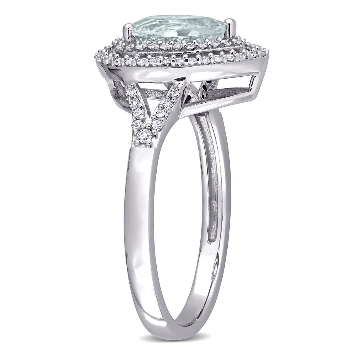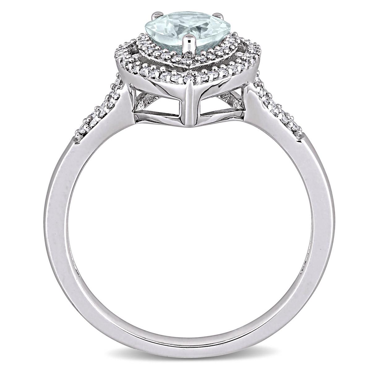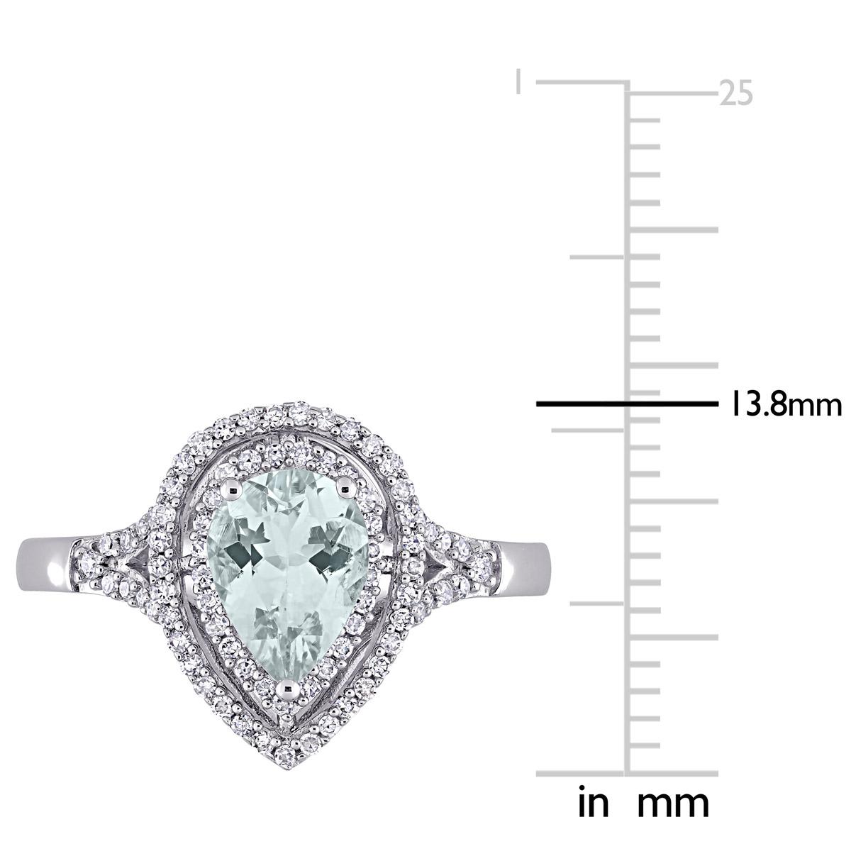 This gleaming Gemstone Classics™ halo engagement ring is mounted in 14kt. white gold. This lovely teardrop wedding ring features a pear-cut, prong-set glowing aquamarine gemstone at the center embellished by 78 round-cut, prong-set gleaming diamonds encrusted in a double halo pattern, to give it an elegant and stylish look. This beautiful cocktail ring will make a sparkling and valuable addition to any jewelry collection. Liven up your outfit with this gorgeous gemstone and diamond ring and look as luxurious and elegant as the Queen with this ring on your finger.