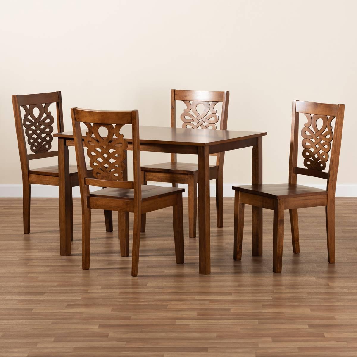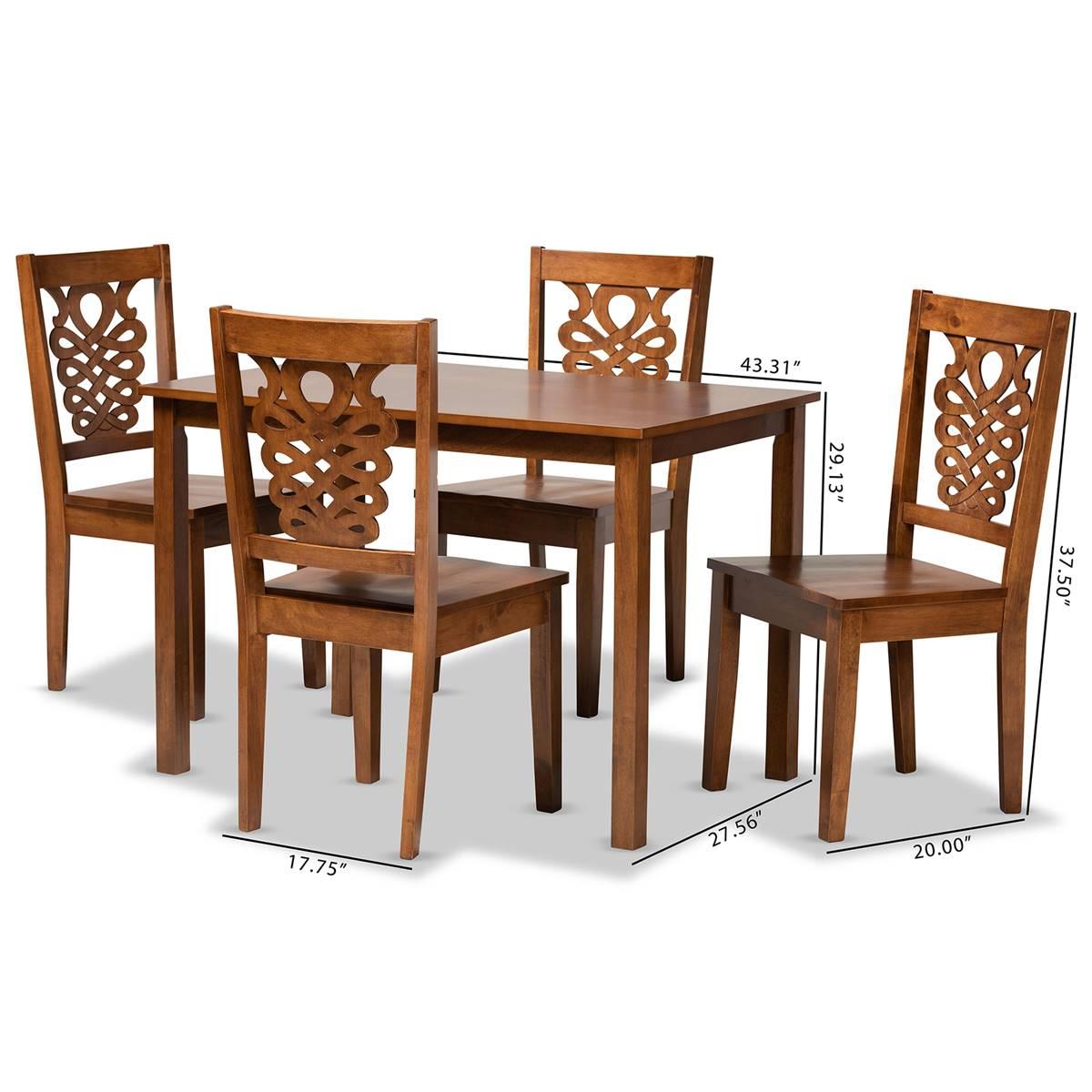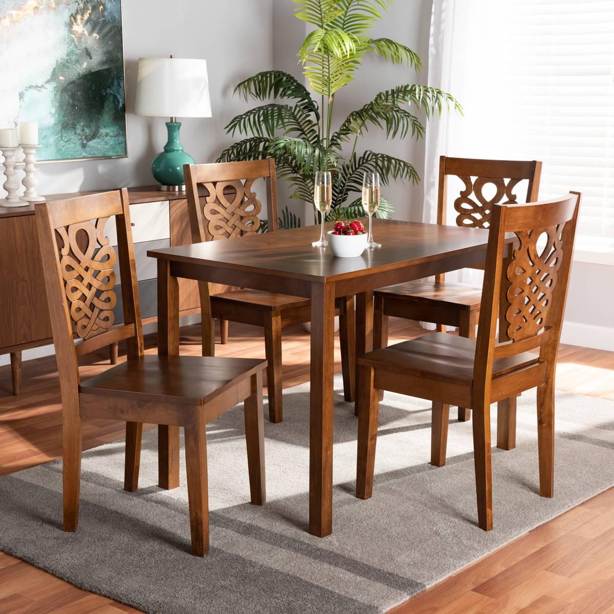 Description The Baxton Studio Luisa modern and contemporary transitional 5-piece dining set features a walnut brown finished wood. Imbue your dining space with this elegant...