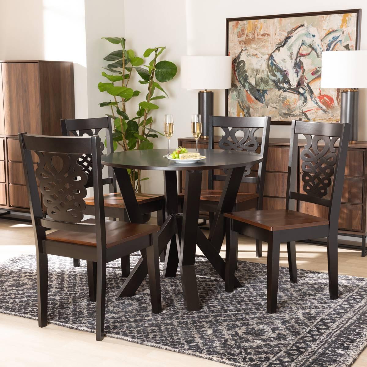 Description The Baxton Studio Valda modern and contemporary transitional 5-piece dining set features two-tone dark brown and walnut brown finished wood. Imbue your dining space...