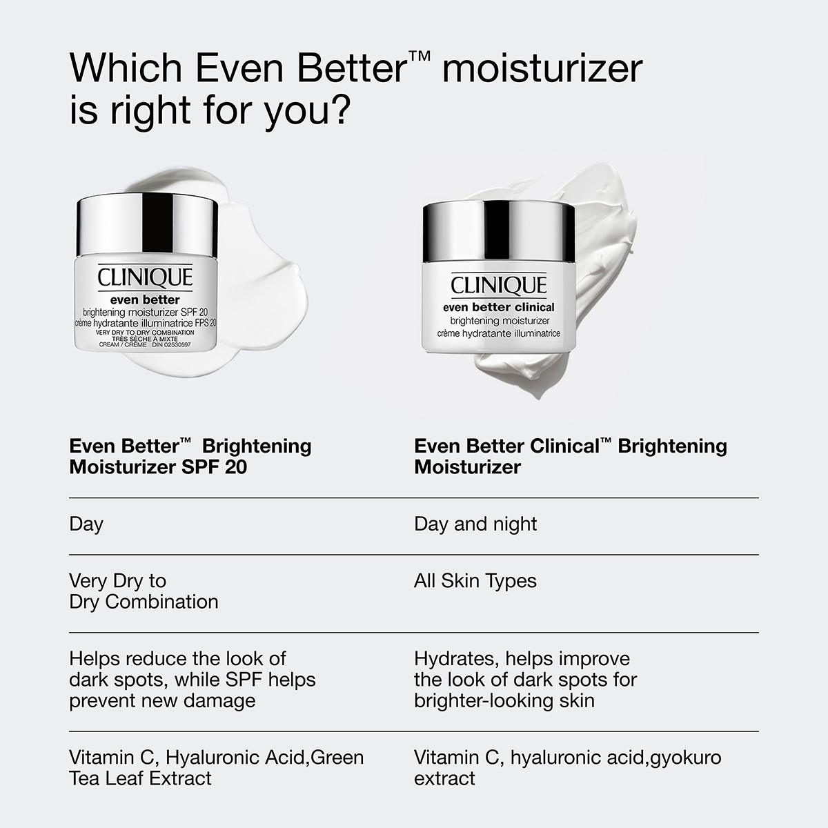 PRODUCT DETAILS- Clinique’s Even Better Clinical™ Brightening Moisturizer is a lightweight, oil-free facial moisturizer that hydrates and helps improve the look of dark spots.
