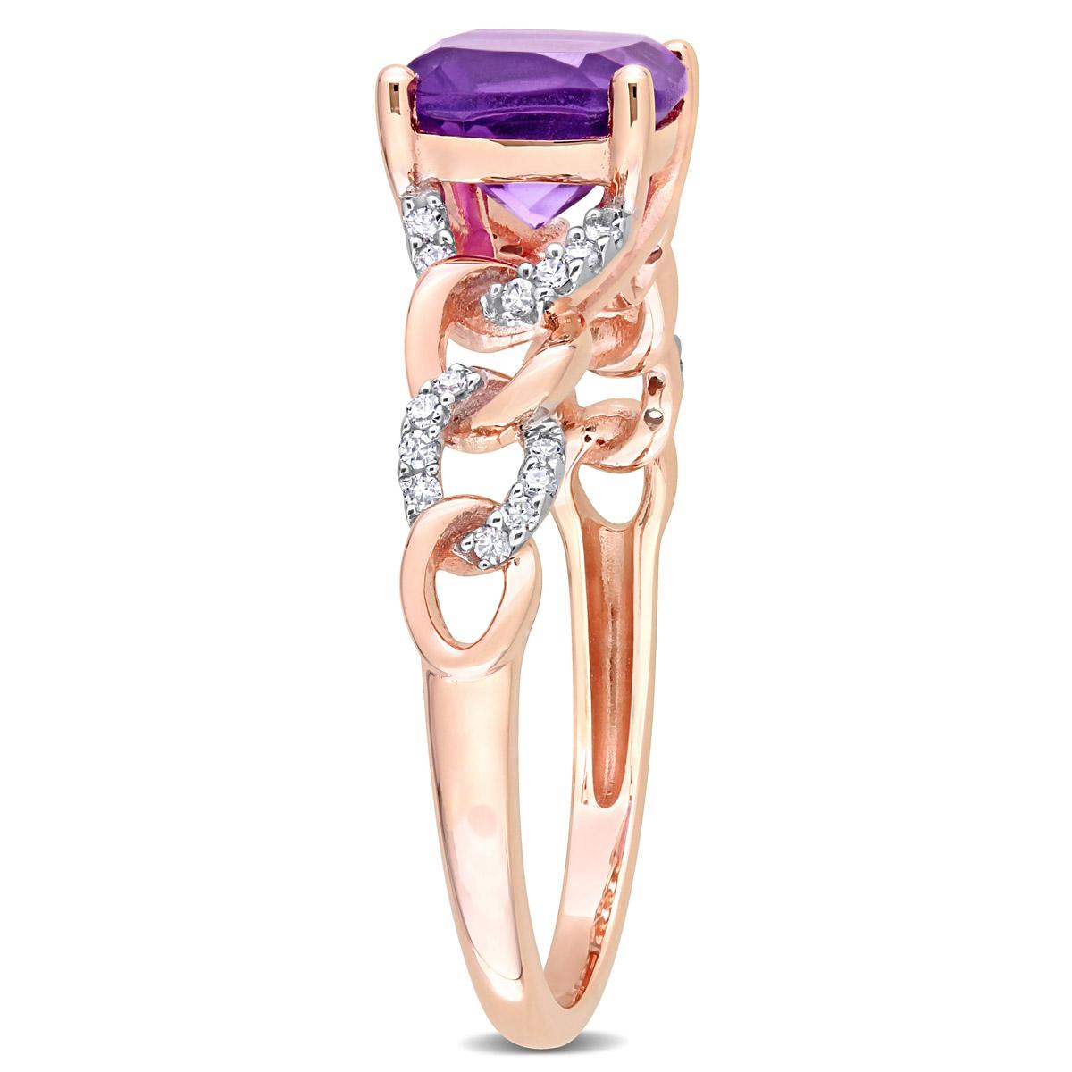 Description This pretty Gemstone Classics™ amethyst link engagement ring is crafted in 10kt. rose gold. This wedding ring features a cushion-cut, prong-set African amethyst...