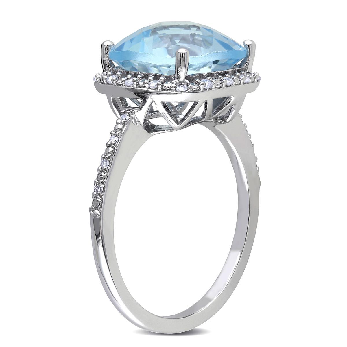 Description This pretty Gemstone Classics™ cocktail ring features a cushion-cut sky blue topaz center stone enhanced by 24 round white diamond side stones. This beautiful ring...