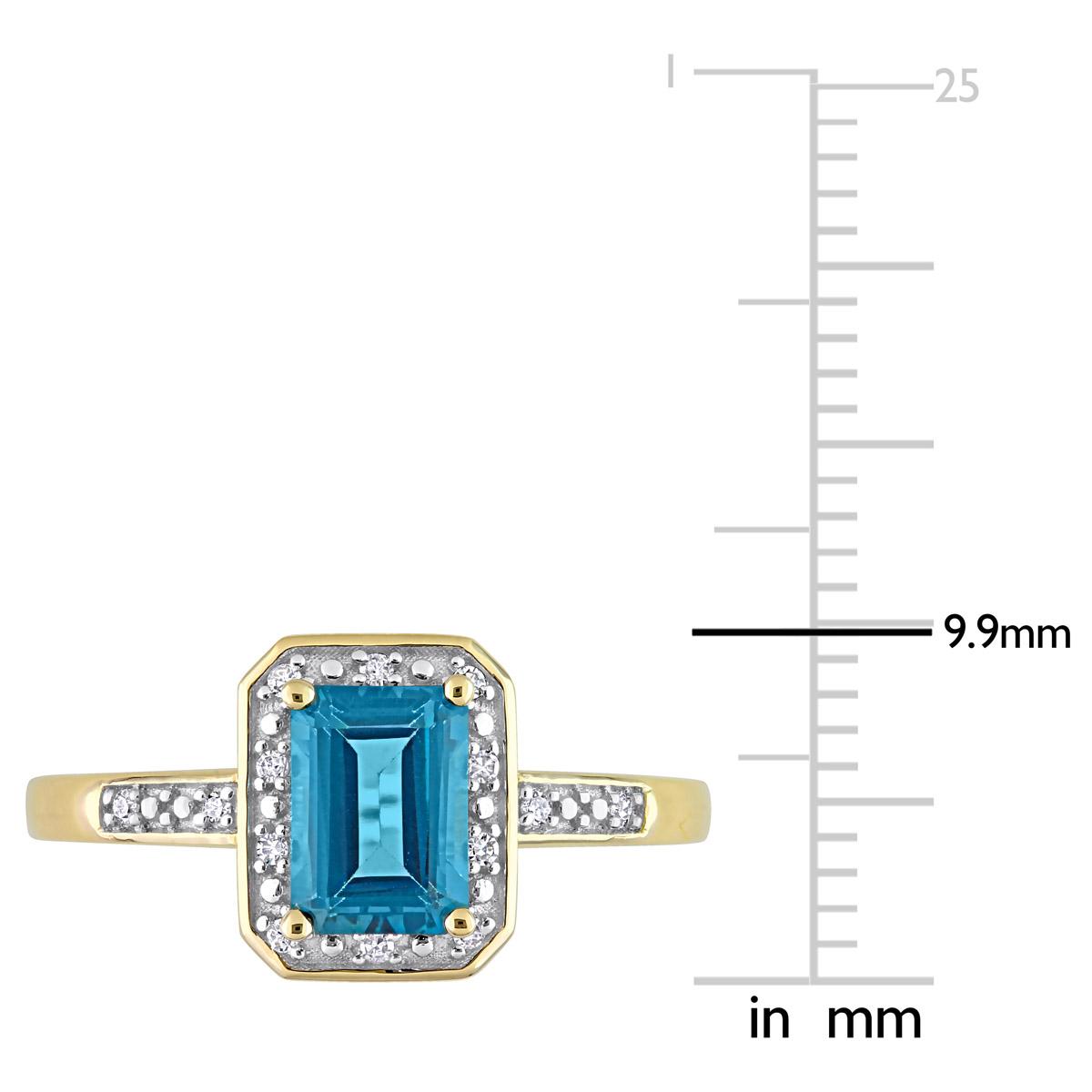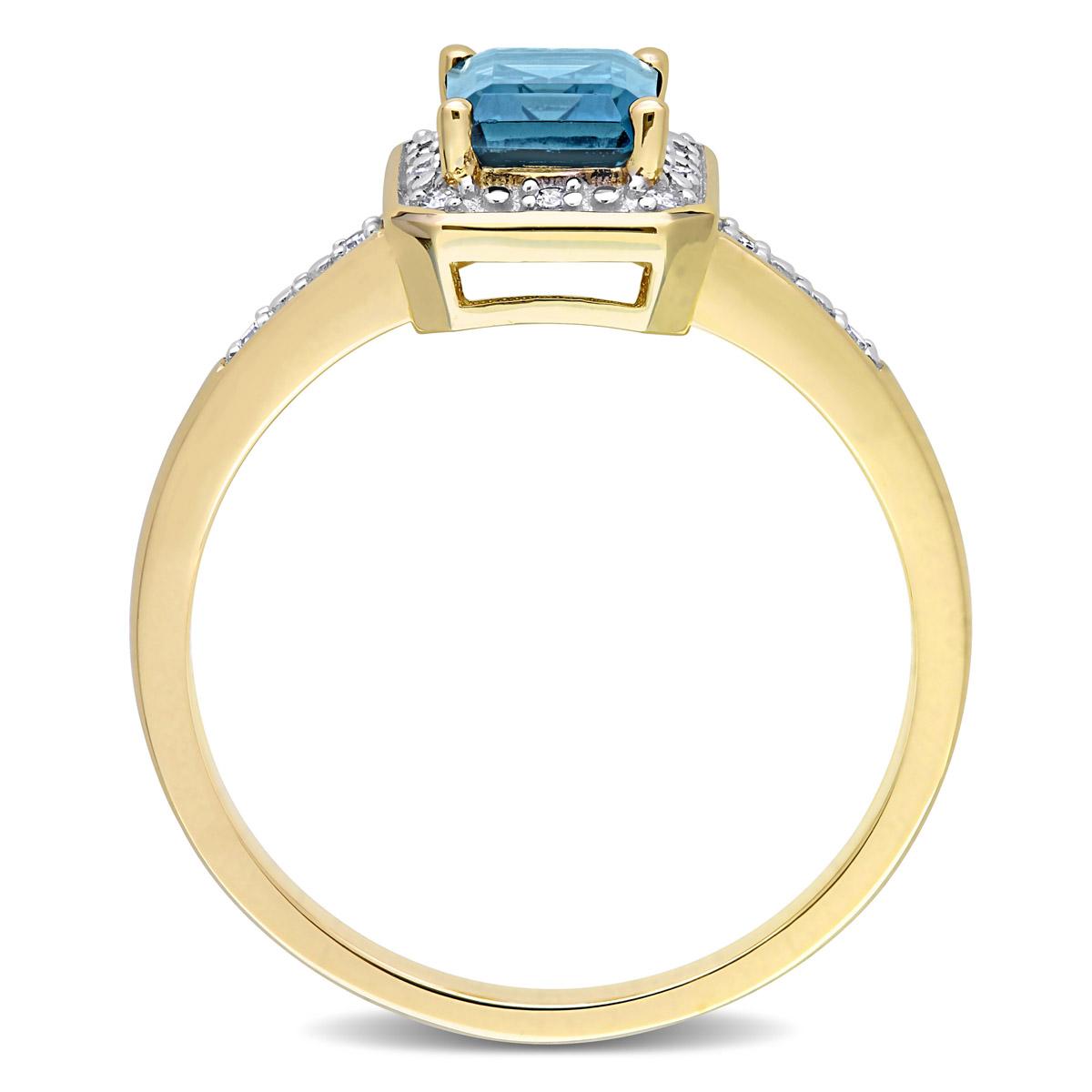 Description Grab attention wherever you go with this enchanting Gemstone Classics™ London blue topaz and diamond accent halo ring. Mounted in lustrous 14kt. yellow gold, this...
