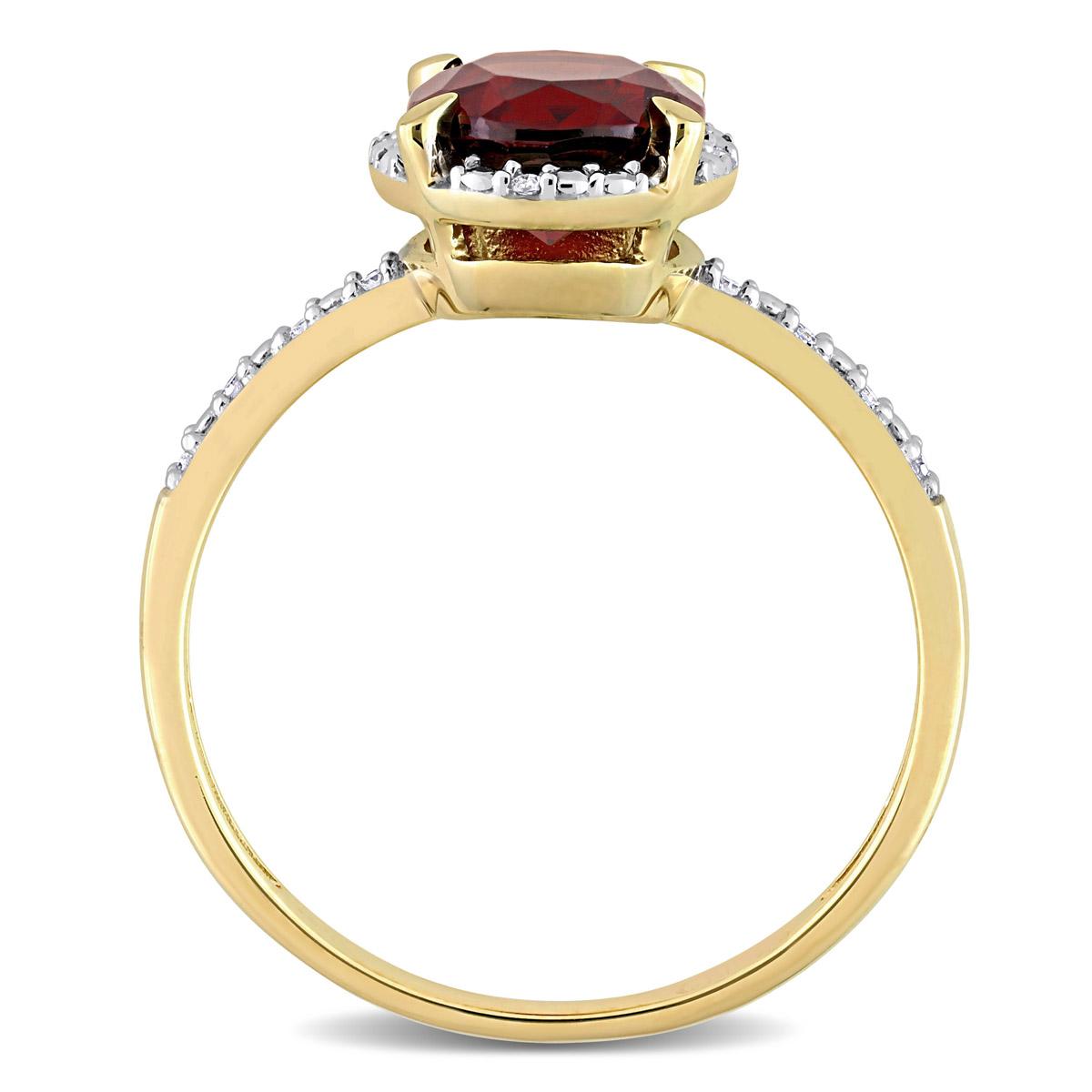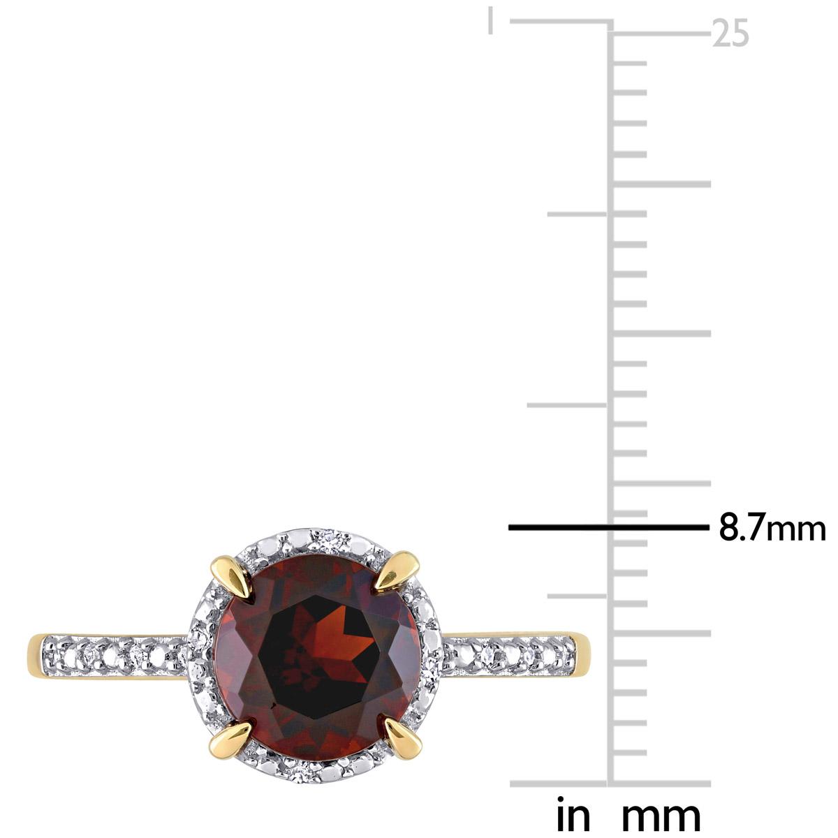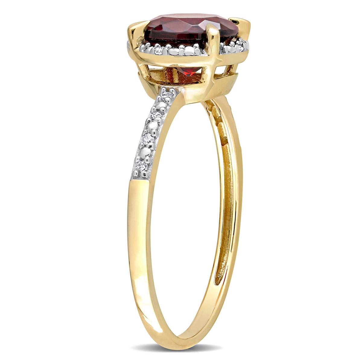 Description This Gemstone Classics™ cocktail ring features a round-cut garnet gemstone and round-cut white diamonds set in 10kt. yellow gold. The beautiful ring glimmers with a...