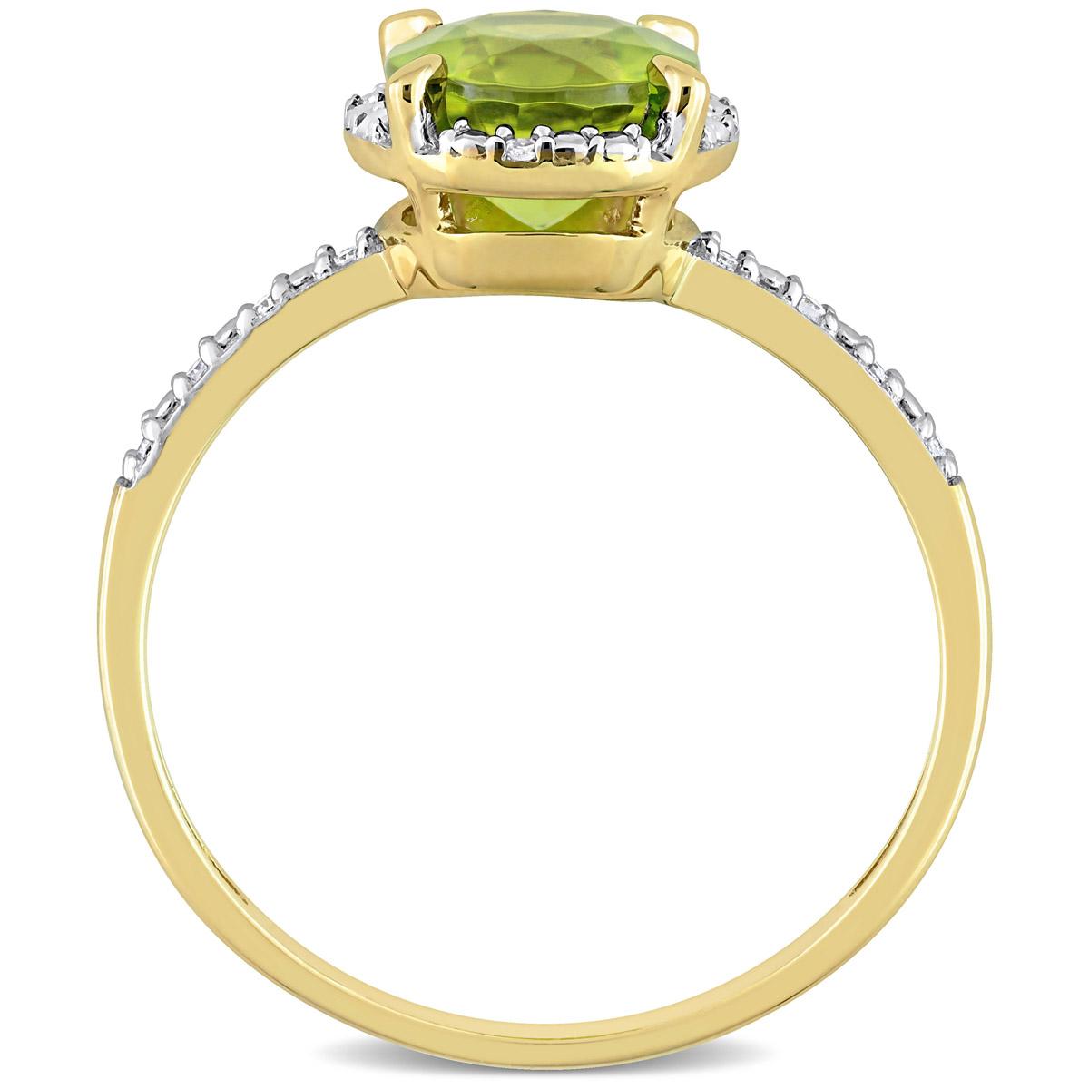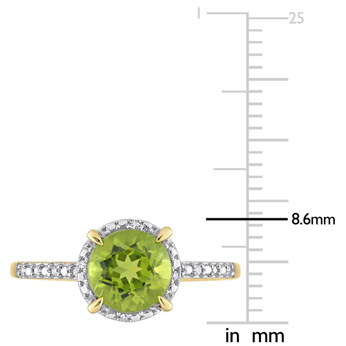 Description This graceful Gemstone Classics™ fashion ring features a round-cut peridot gemstone and round-cut white diamonds set in 10kt. yellow gold. The cocktail ring...