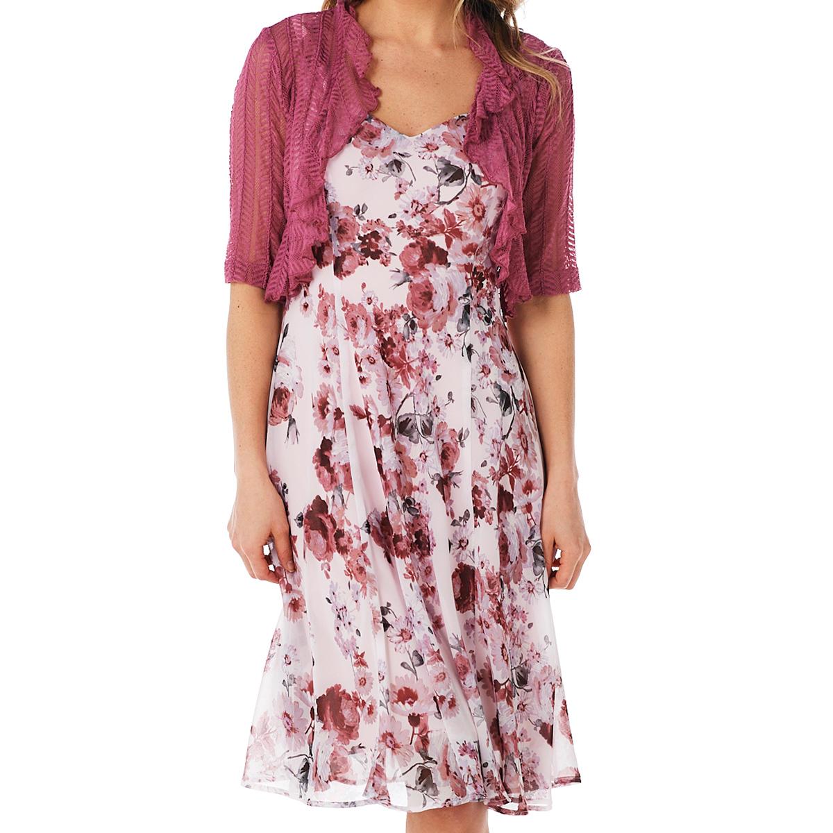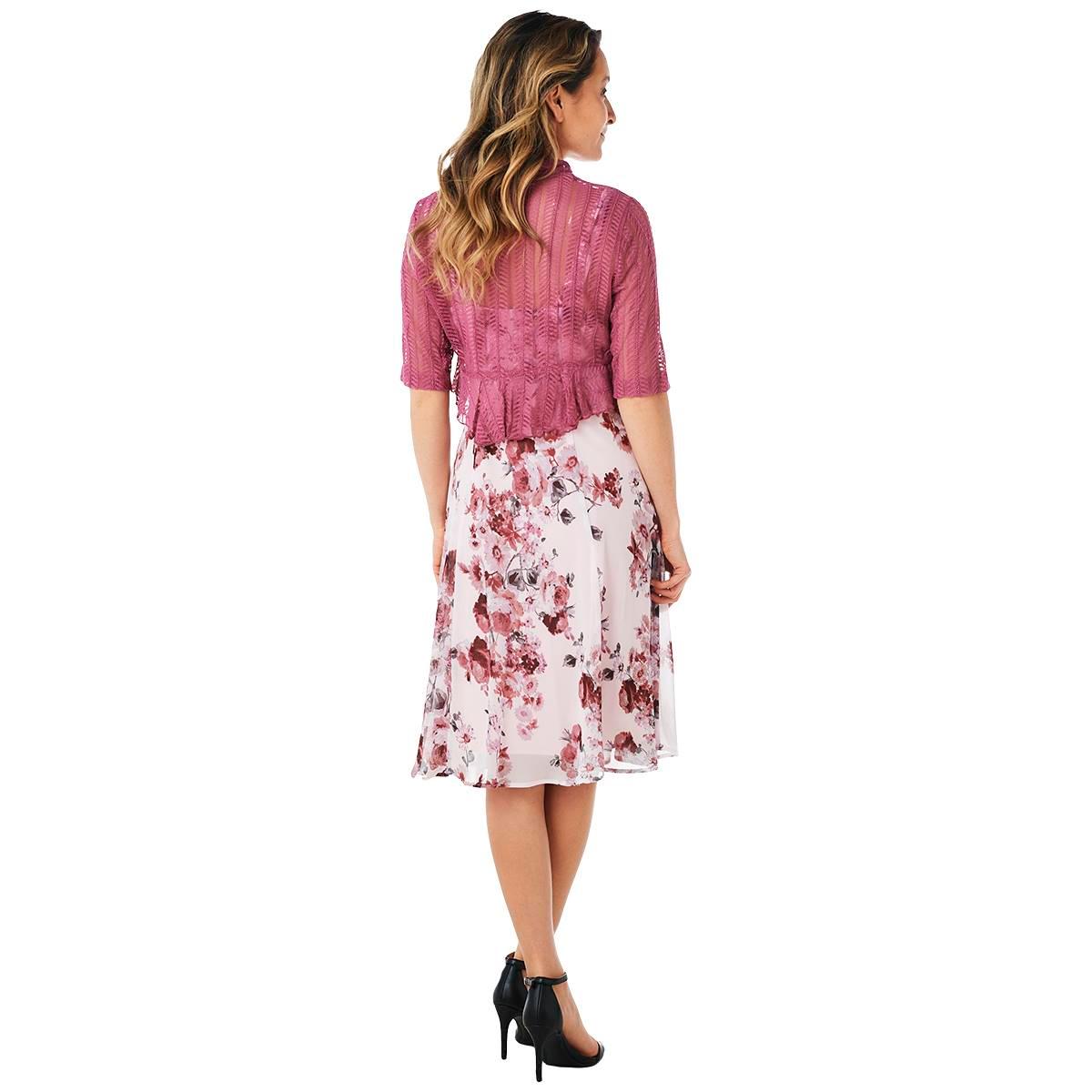 Petite Connected Apparel Crochet Jacket Floral Shift Dress