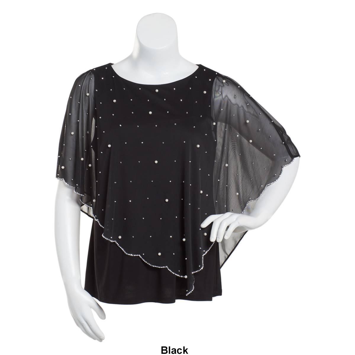 Description Glow with the flow of this Petite MSK farage beaded trim overlay blouse that features a scalloped-edge overlay that´s sprinkled with sparkling beads and lustrous...