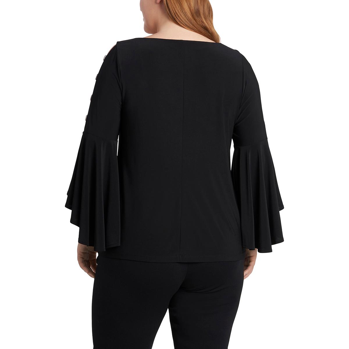 Plus Size MSK Rhinestone Ladder Trim Bell Sleeve Blouse