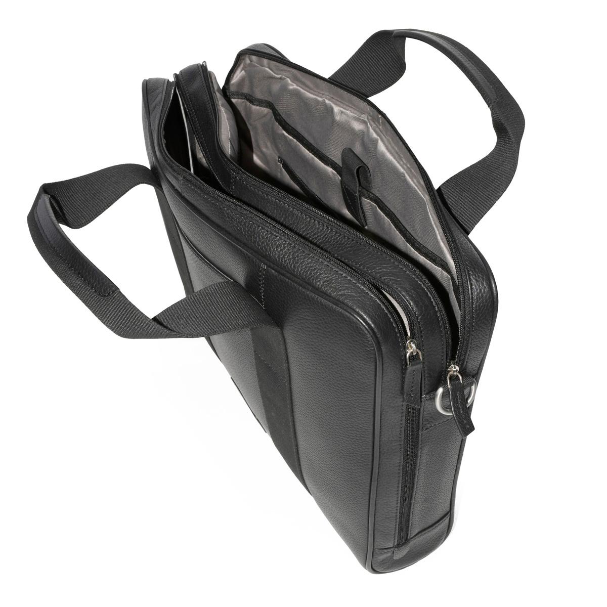 This convenient and practical, large-capacity, Club Rochelier leather messenger meets all your business and travel needs. Fabricated in Genuine textured leather and boasts a large interior compartment for documents, padded laptop and Ipad compartments, two accessory pockets, and an interior zipper pocket. This bag is also the perfect travel buddy with a large back zipper pocket that contains a travel-buddy strap that attaches to the telescopic handle of most luggage. The adjustable strap allows for crossbody or shoulder carry.