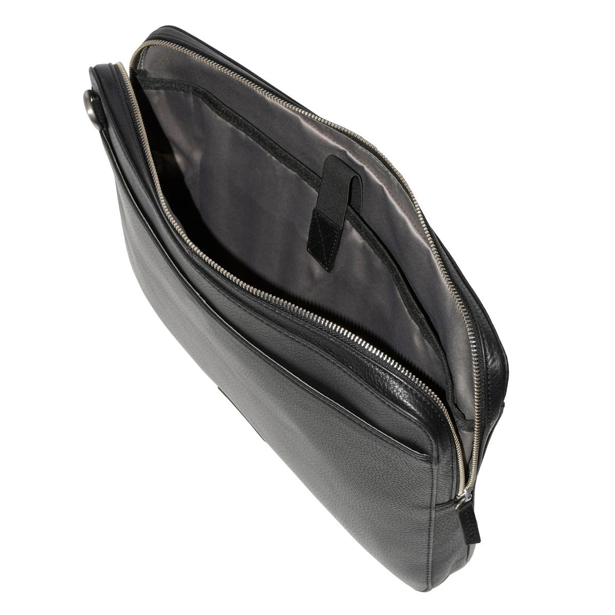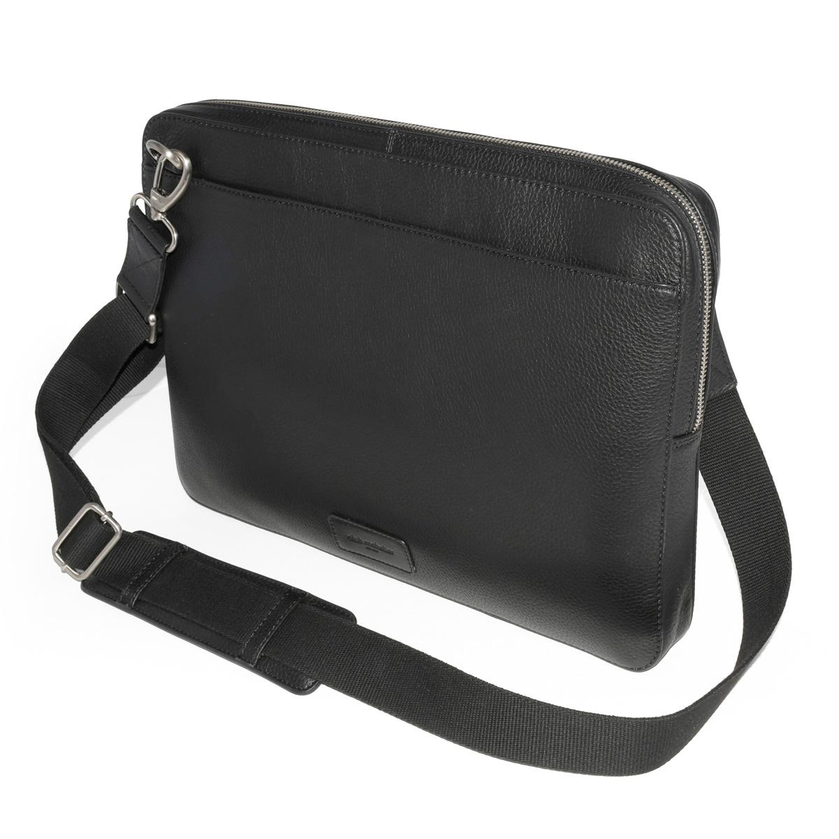 This slim and elegant large-capacity, Club Rochelier leather messenger meets all your business and travel needs. Fabricated in Genuine textured leather and boasts a large interior compartment for documents, padded laptop and Ipad compartments, two accessory pockets, and an interior zipper pocket. The adjustable strap allows for crossbody or shoulder carry.