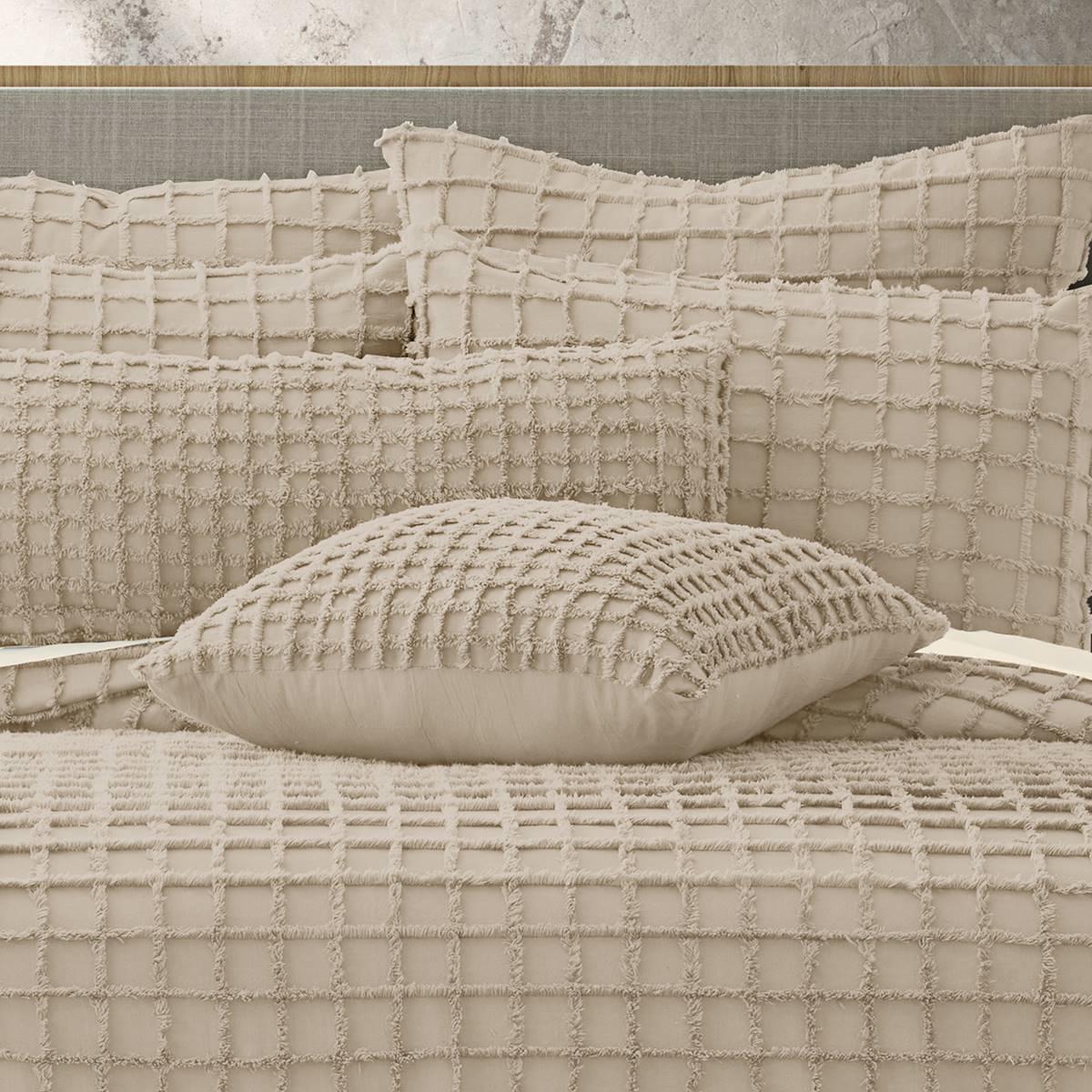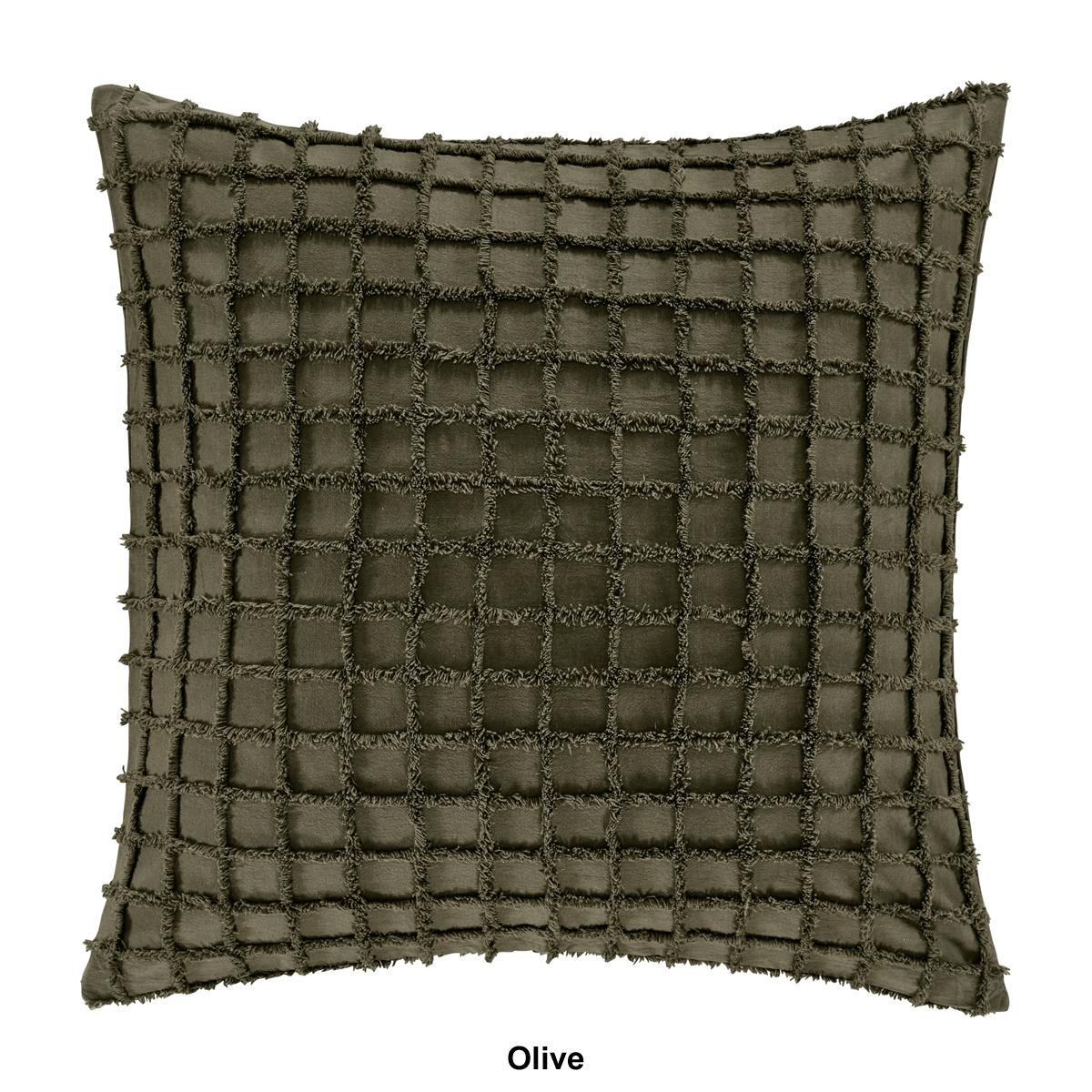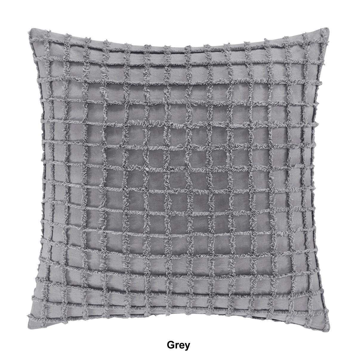 This J. Queen Modern Cameron square decorative throw pillow will fit perfectly in your home. Features a candlewick tufting technique, which offers a raised small grid pattern for a plush and cozy texture.