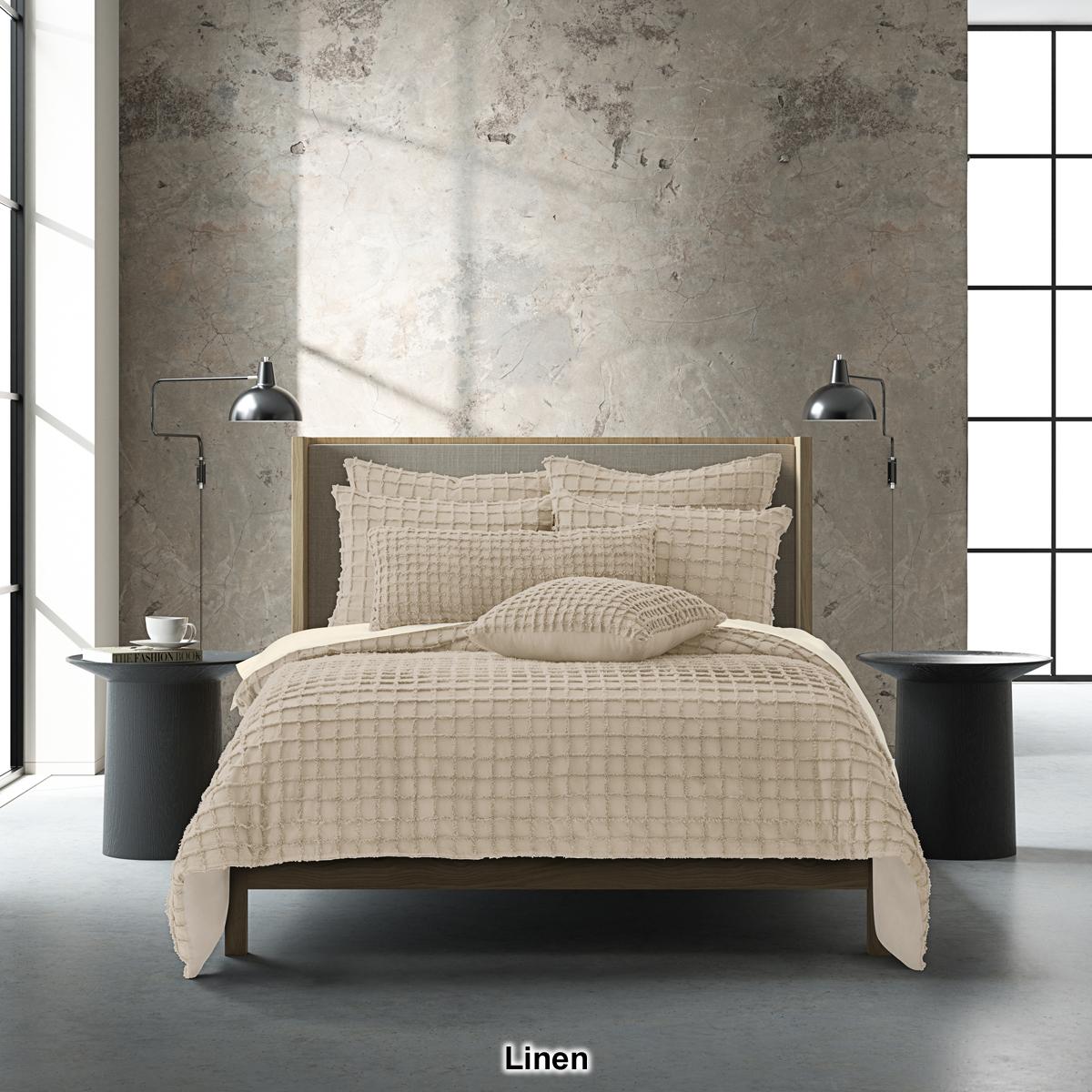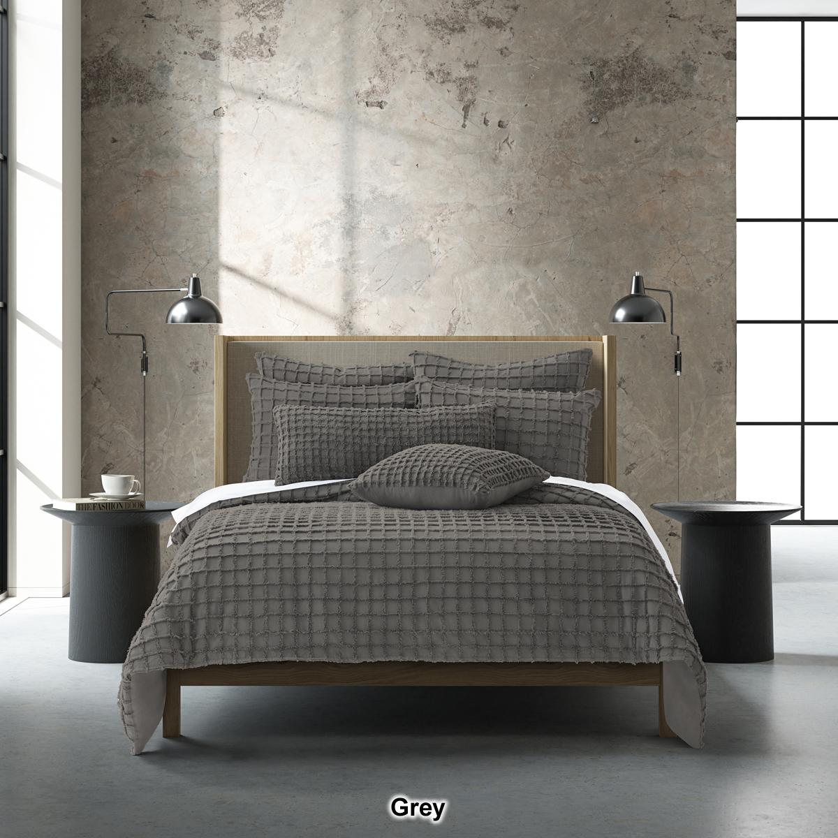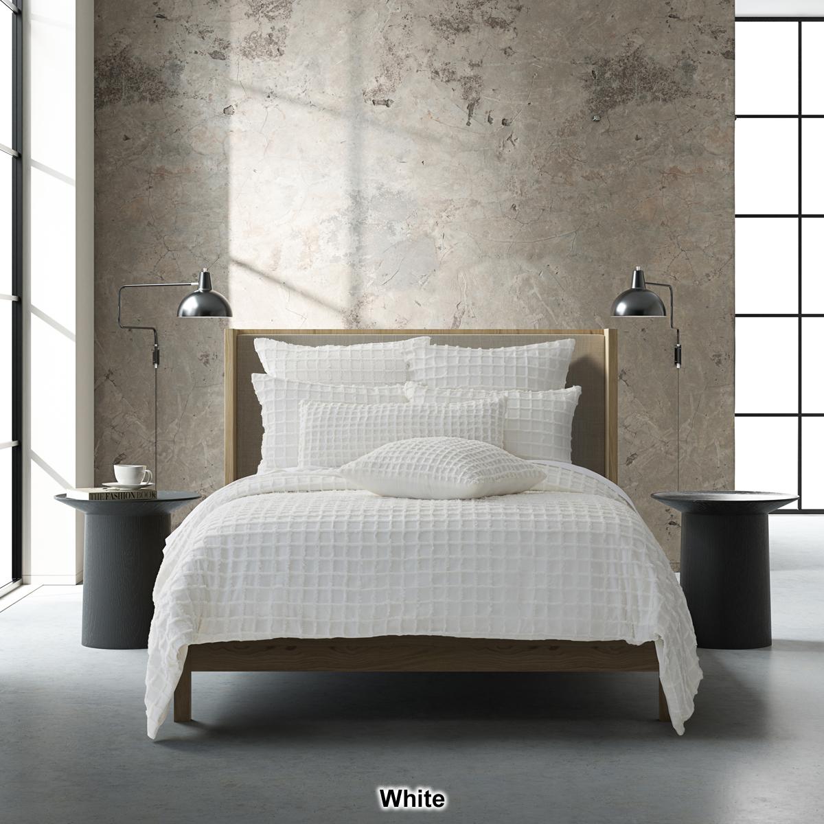Get a completely modern relaxed Boho look with this J. Queen Modern Cameron Duvet Cover Set. Constructed in soft cotton that features a candlewick tufting technique, which offers a raised grid pattern for a plush and cozy texture. The duvet cover provides an all-season mediumweight versatility, with a hidden button closure, and reverses to a solid cotton fabric for a smooth sleep surface.