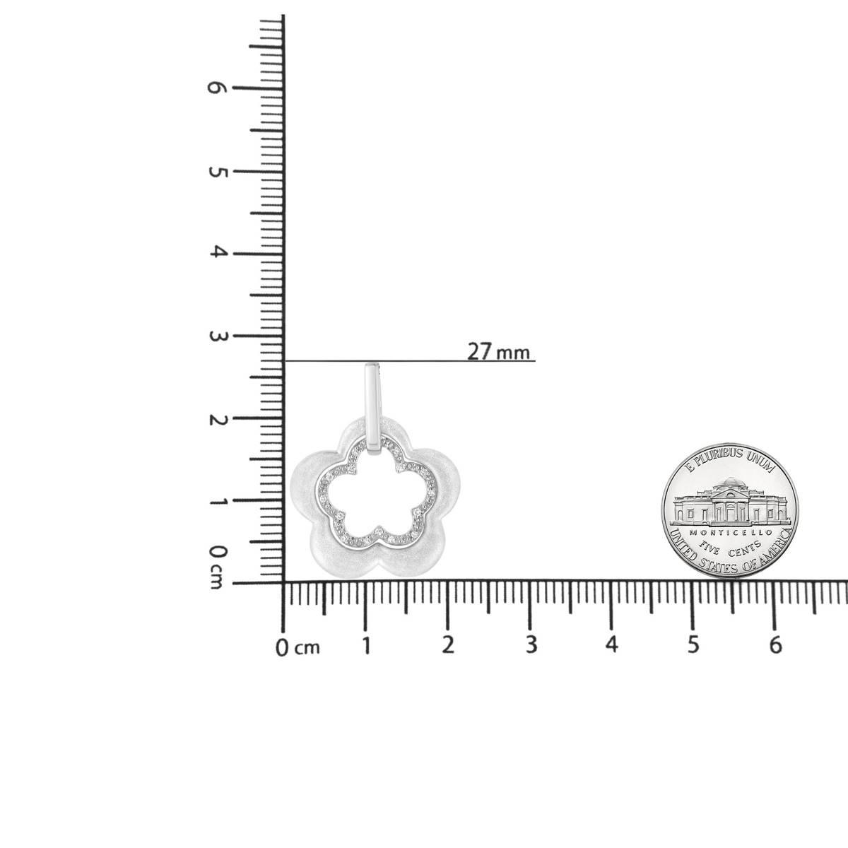 Allure your loved ones with this stylish Haus of Brilliance diamond flower pendant. Gorgeous pendant rendered perfectly on glinting sterling silver showcasing 15 sparkling pave set single cut diamonds, set on floral motif and dangles from a shimmering cable chain. The outer flower is elevated with a satin finish. The total diamond weight is 1/20ctw.