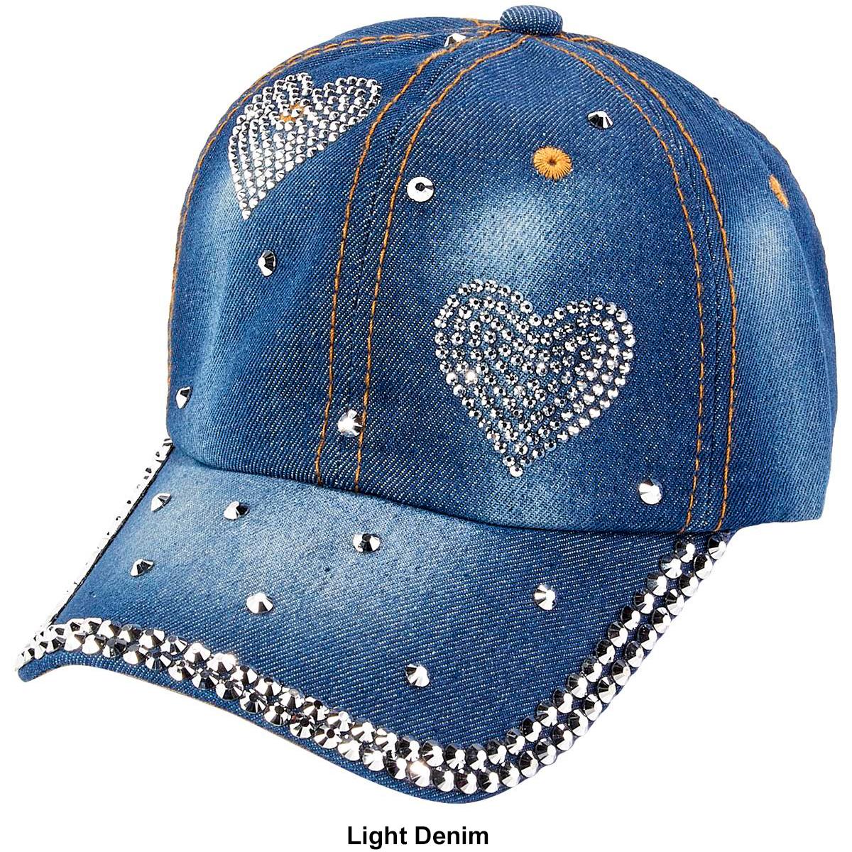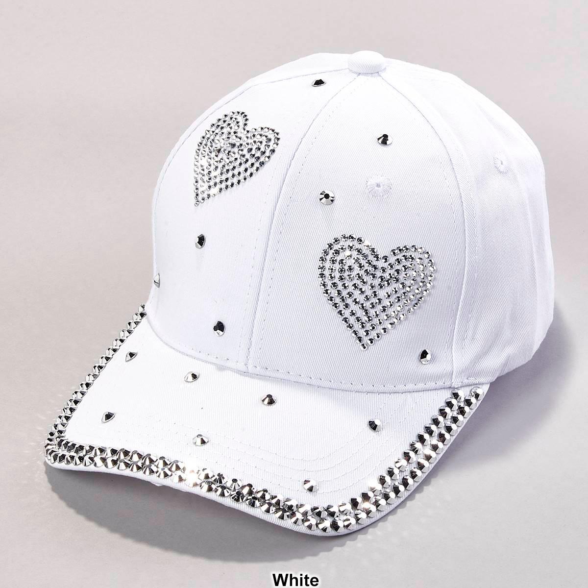 Description Stand out and shine bright wearing this Womens Madd Hatter bling and rhinestone heart baseball cap with back velcro closure. Velcro closureRhinestone detail on cap...