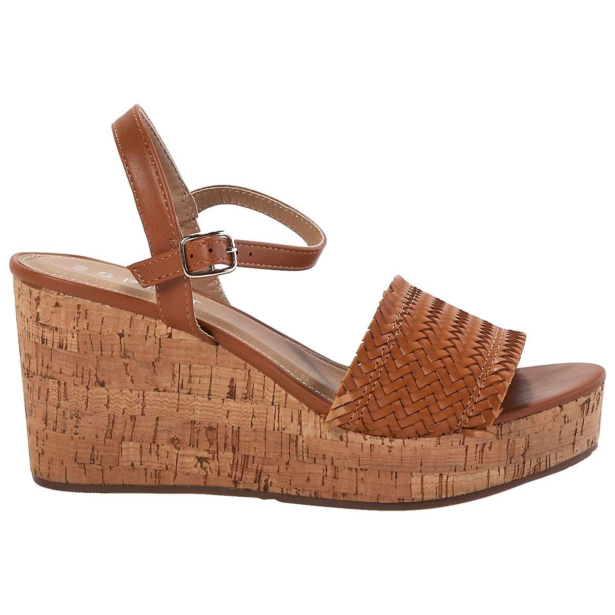 Description Strut your confidence by wearing the Womens Esprit Virginia wedge slingback sandals. Providing an adjustable ankle strap, open toe, cork wedge heel, and a pretty...