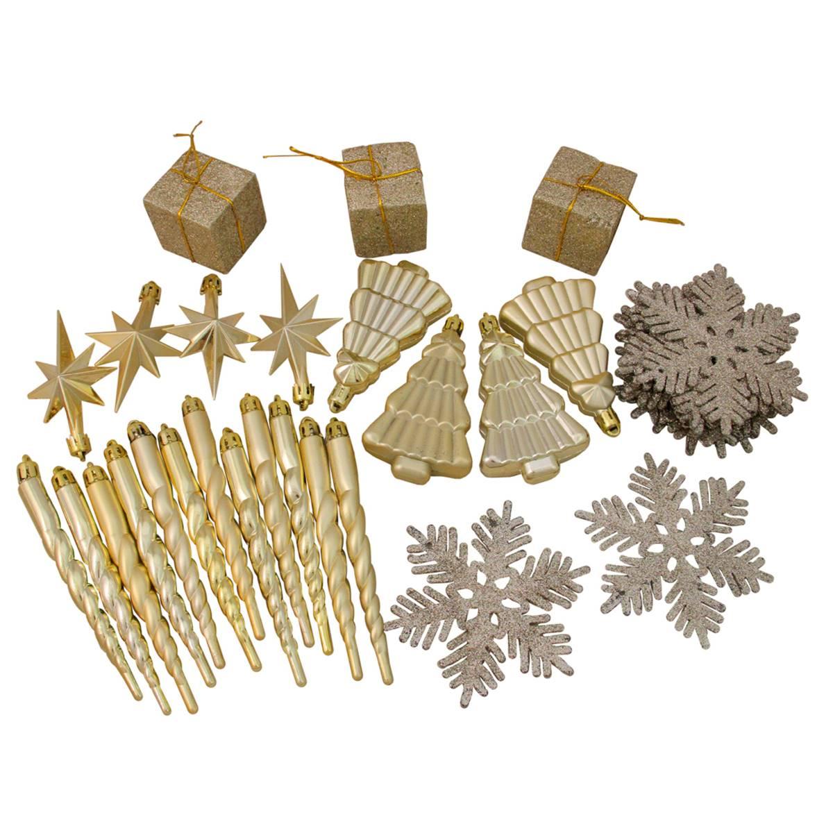 Description This amazing array of ornaments from Northlight Seasonal is done in a variety of outstanding champagne gold tones with a mixture of matte, shiny and glitter finishes....