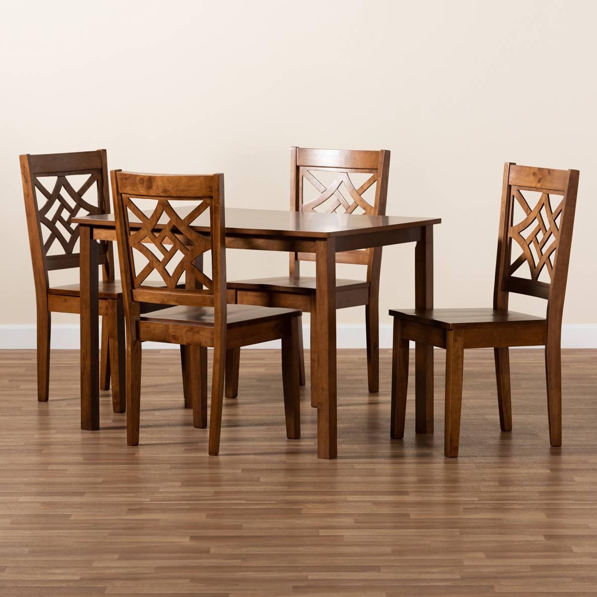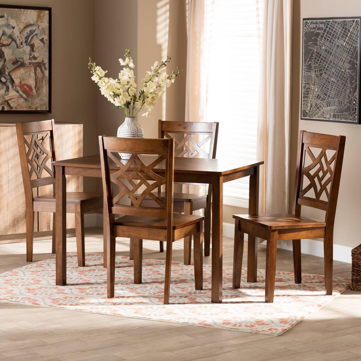 Baxton Studio Nicolette Walnut Brown Finished Wood 5pc Dining Set