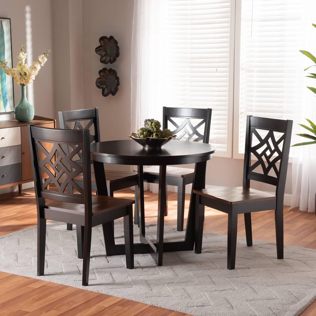 Baxton Studio Brava Two-Tone Dark Brown Wood 5pc. Dining Set