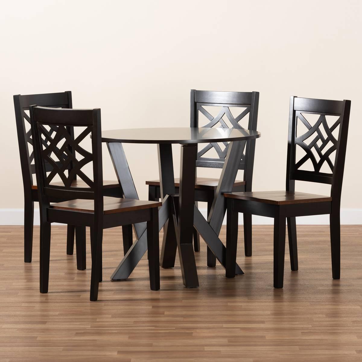 Baxton Studio Kaila Two-Tone Dark Brown Wood 5pc. Dining Set