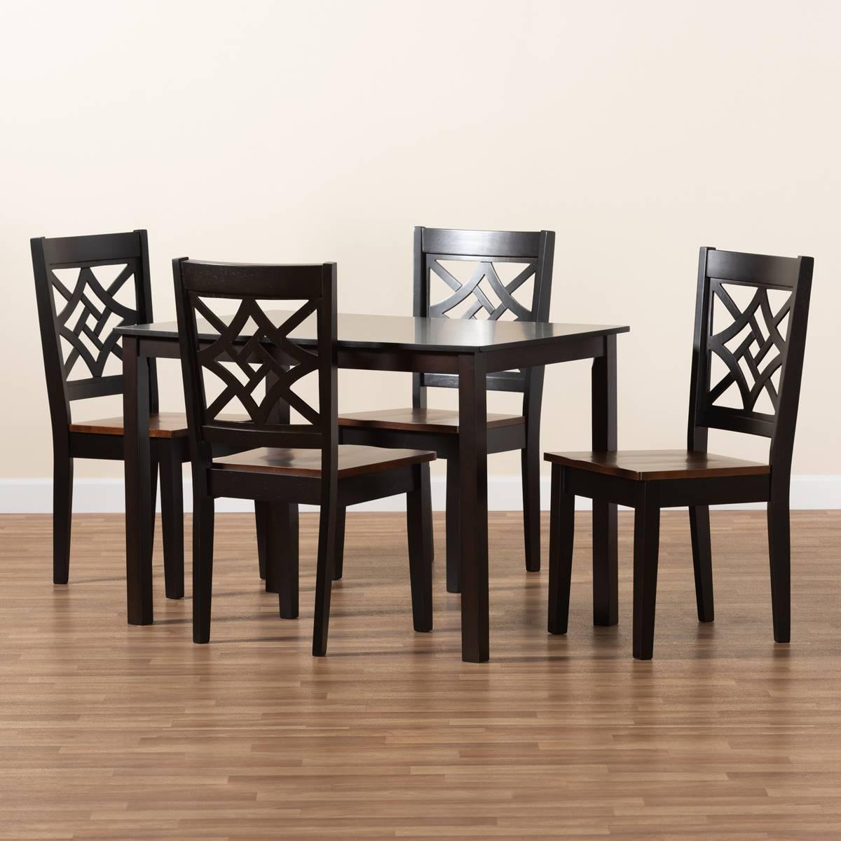 Baxton Studio Nicolette Two-Tone Dark Brown Wood 5pc. Dining Set