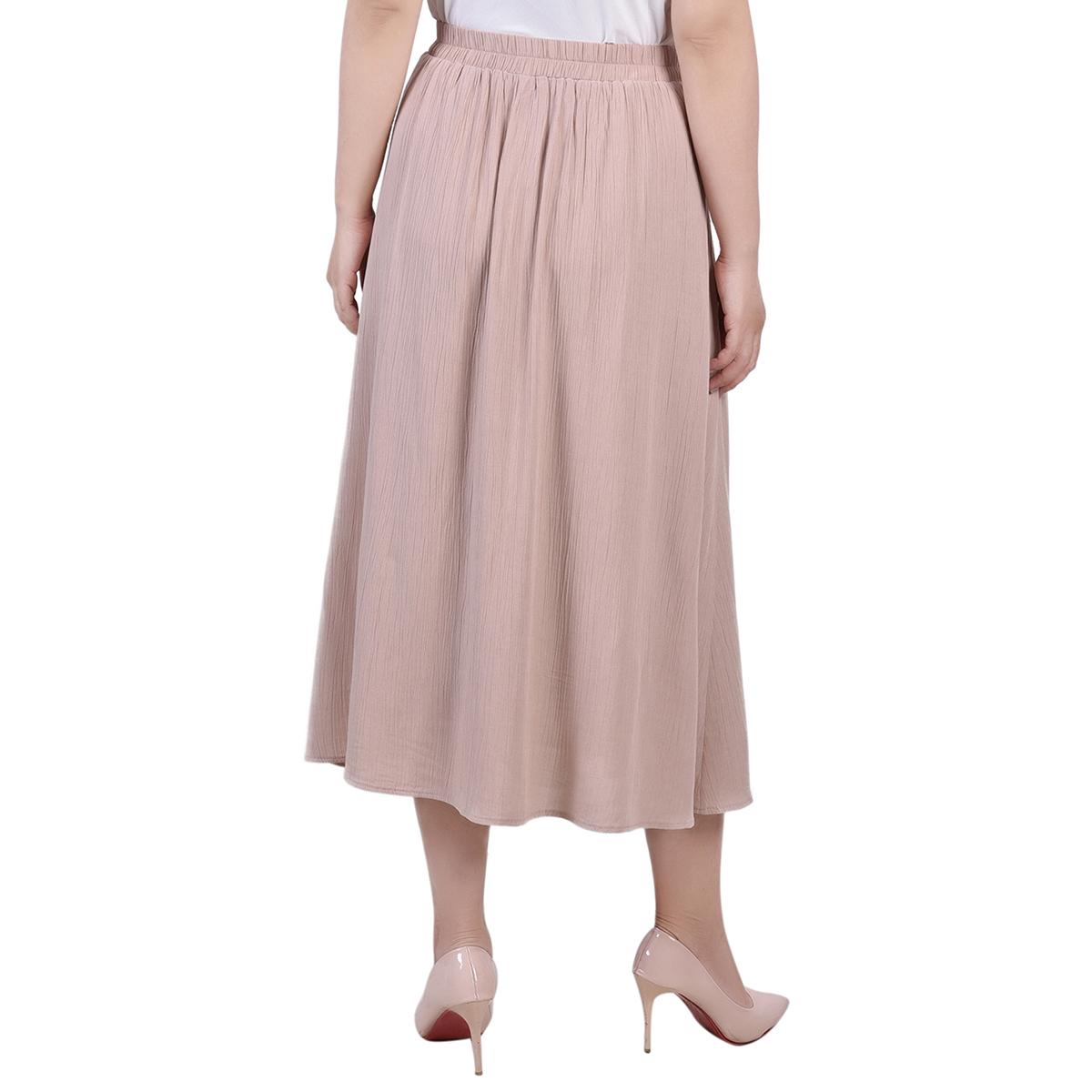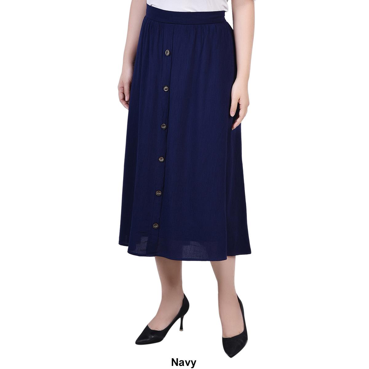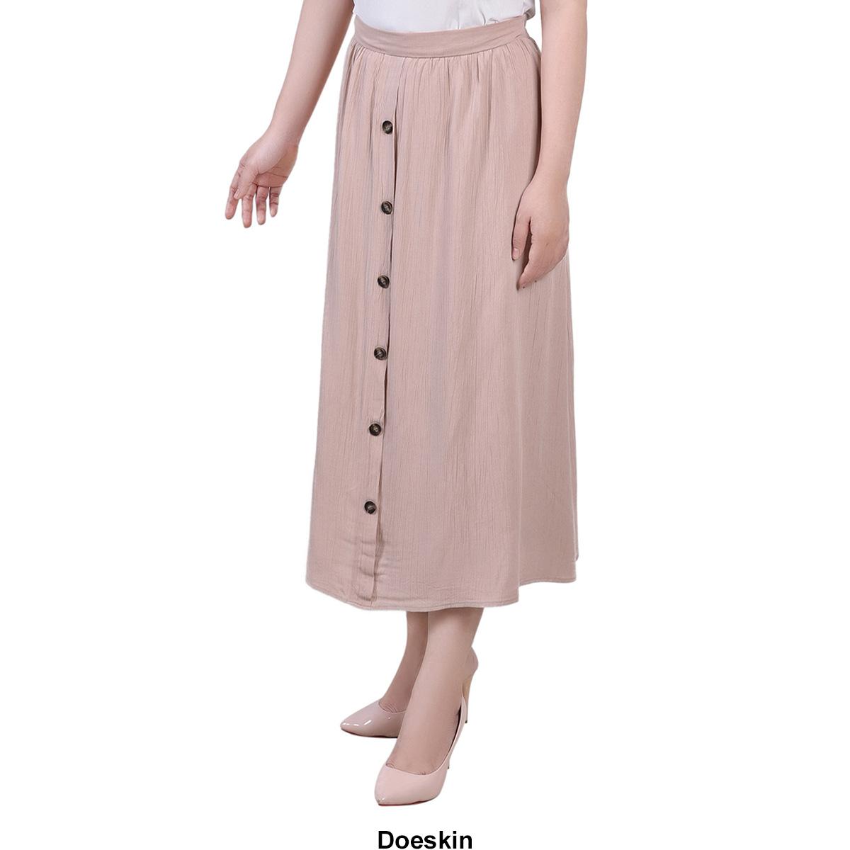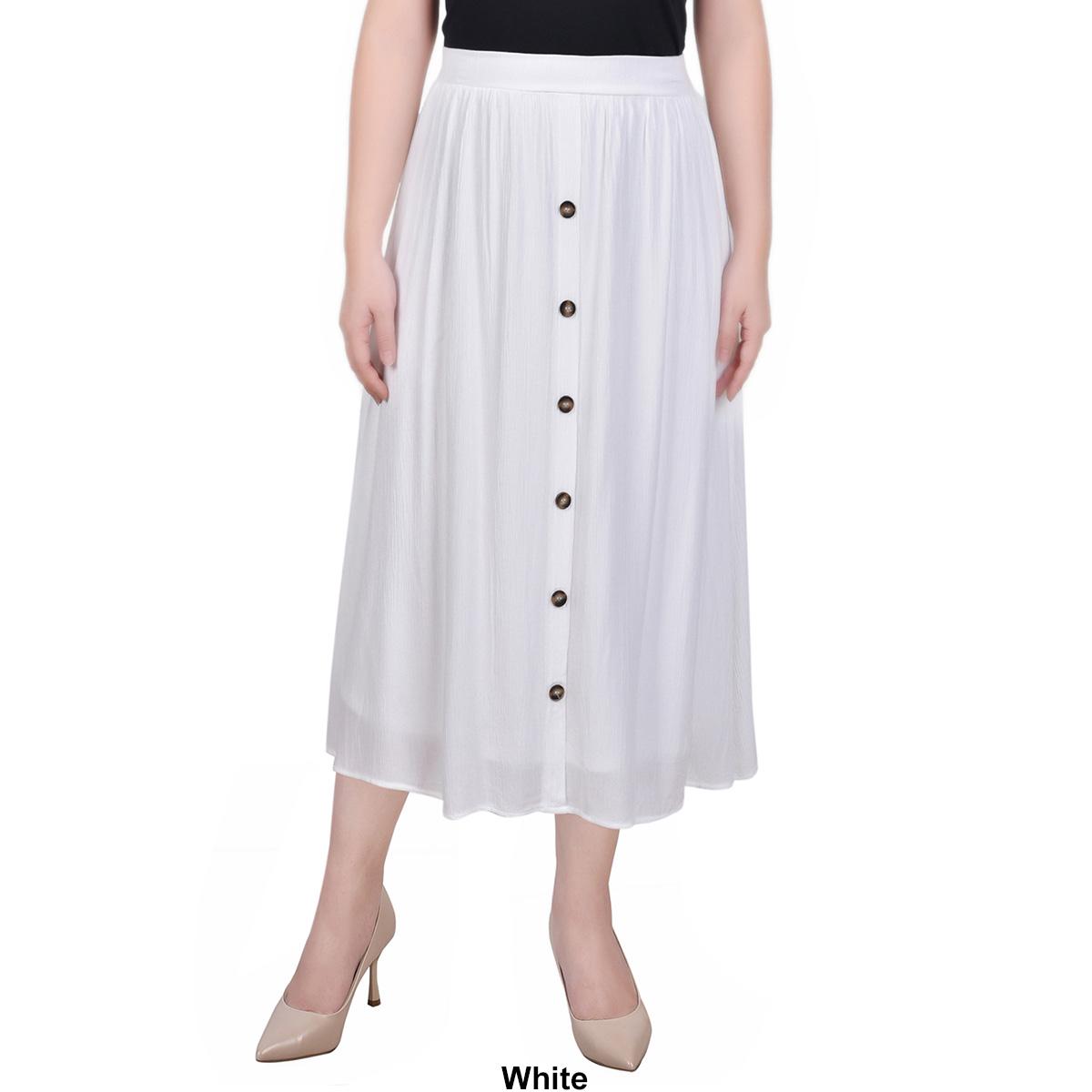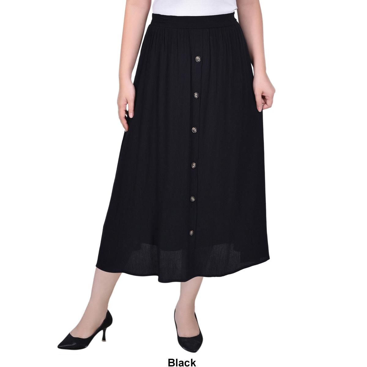 Description Look stylsih wearing this Petite NY Collection pull on woven gauze skirt. Length: 35"Button front Elastic Waist Care: Machine Wash Material: Rayon Item #: 739997...