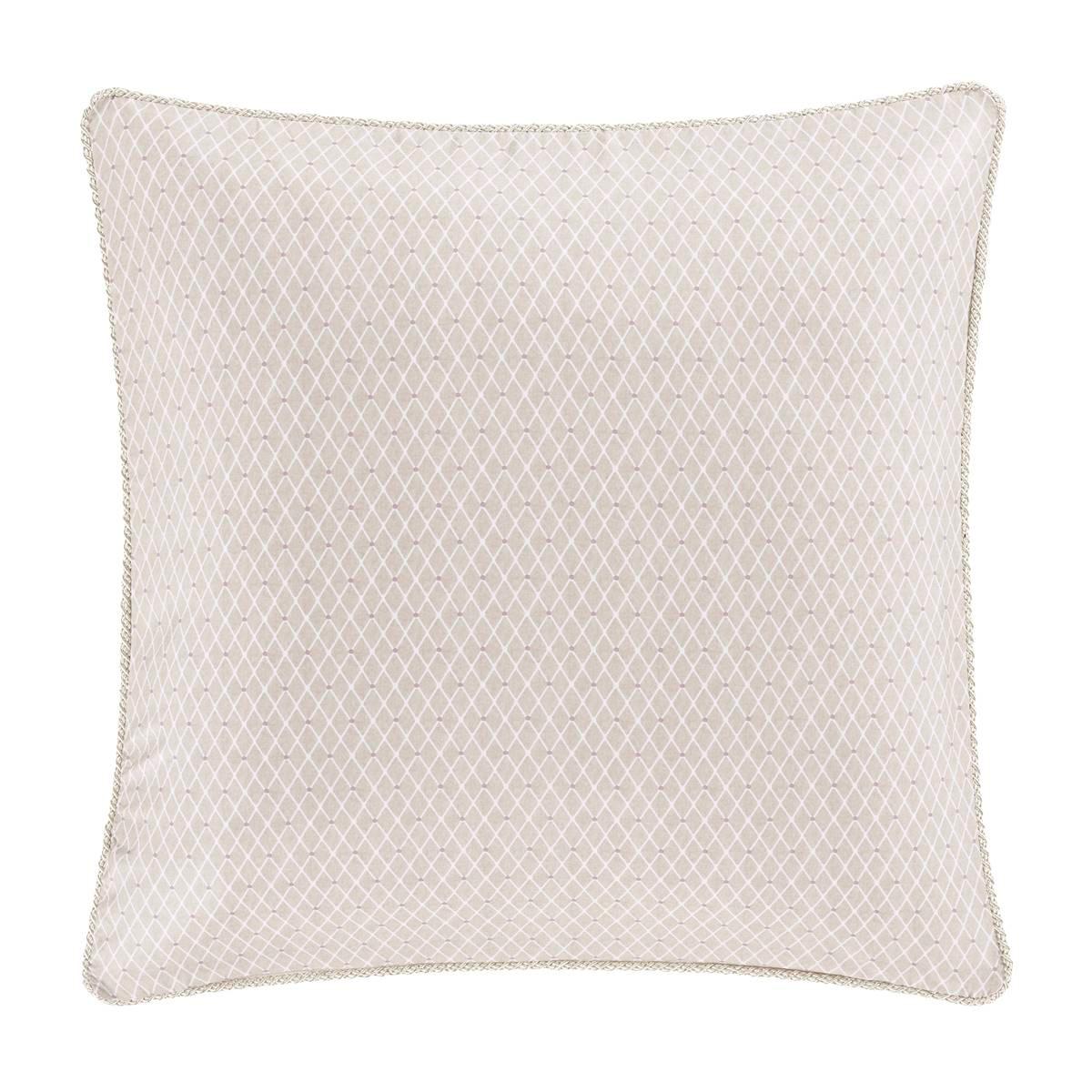 Feel comfy and relaxed with this Royal Court Chardonnay euro sham. Features a classic floral pattern in deep blush, lavender, and gold colors which are enhanced by earthy ivory tones. This classic look is adorned with a twisted cord around all sides and reverses to an antique diamond dot pattern.