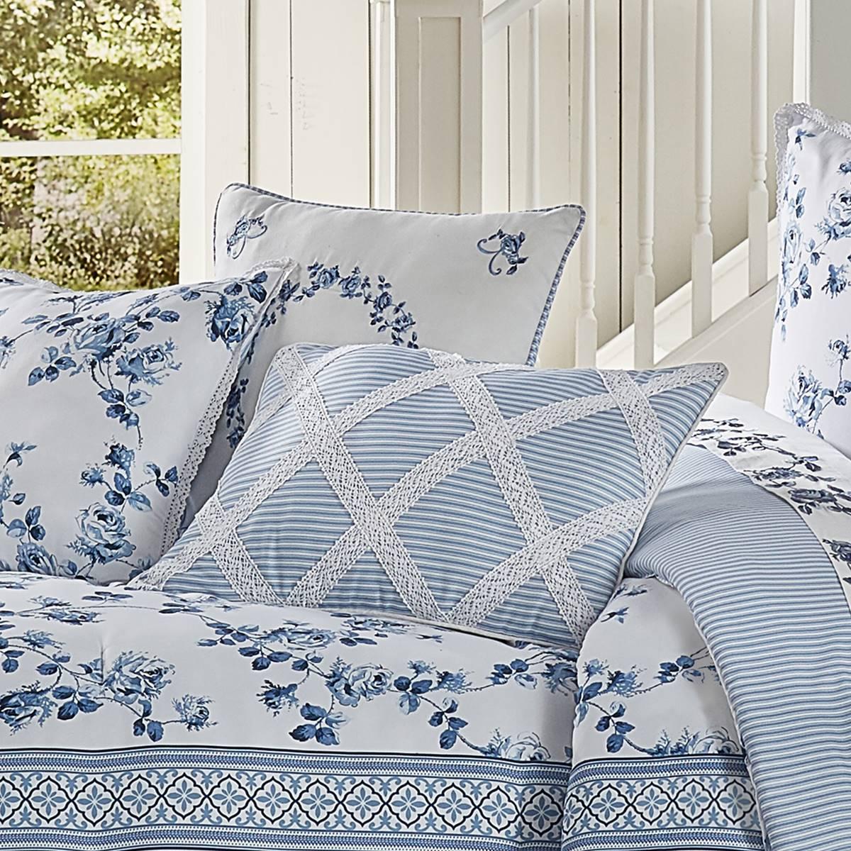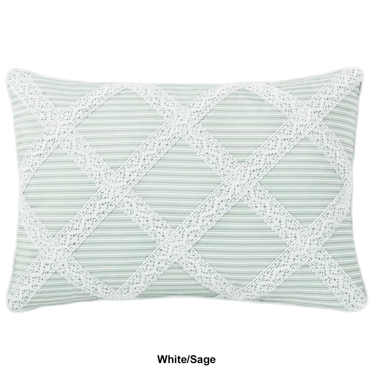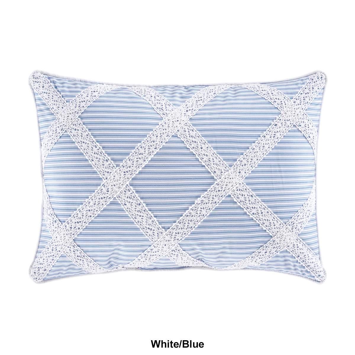 This Royal Court Rialto boudoir decorative pillow is the perfect addition to your home. Styled with delicate ivory lace bands creating a lattice pattern sewn over a lovely fabric.