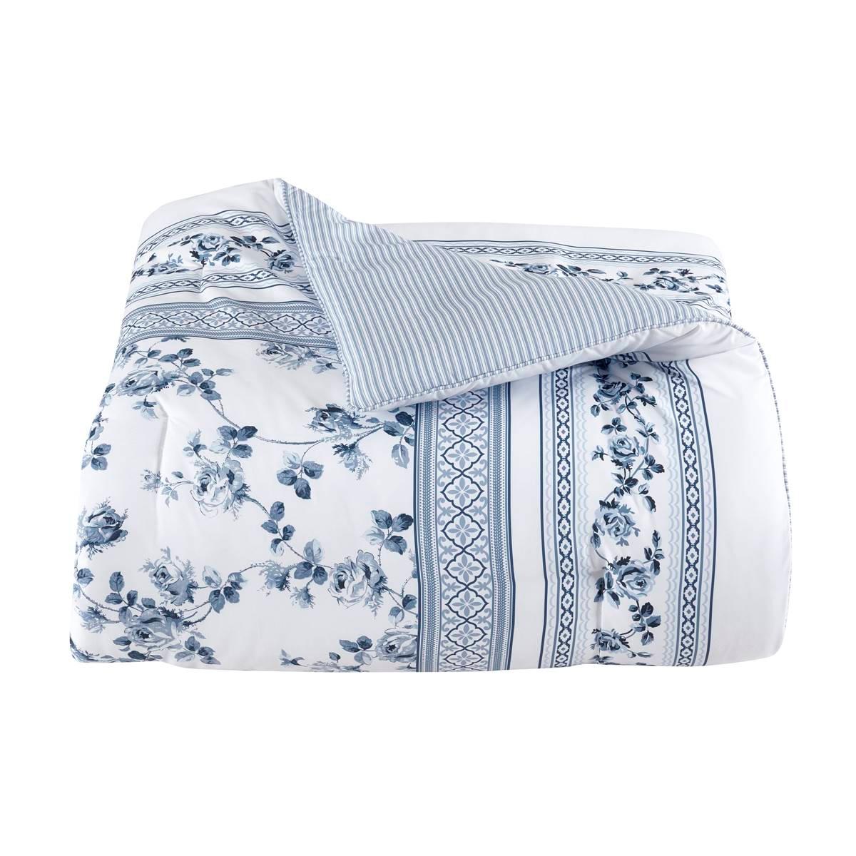 Create an atmosphere of sophisticated elegance with this Royal Court Rialto full/queen 4-piece comforter set. Features a classic floral design. The comforter reverses to a timeless ticking stripe fabric for a tasteful touch of detail. Paired with pillow shams and a bed skirt, this stunning collection is the perfect addition to your home.