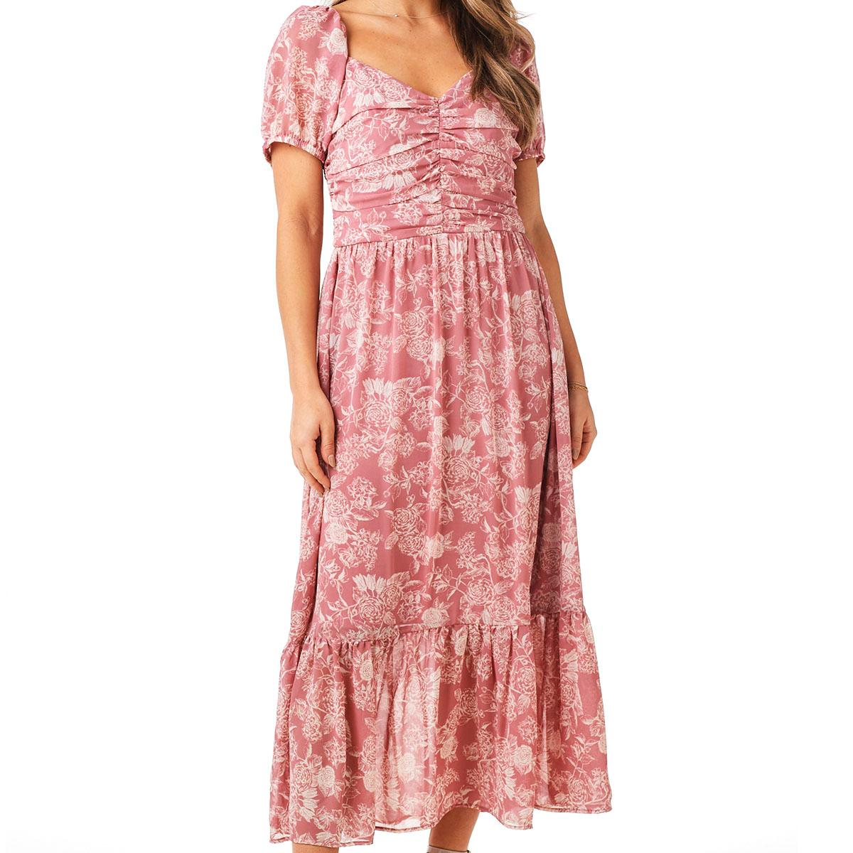Description Liven up your casual style with this Womens Luxology floral maxi dress Sleeve Length: Short SleeveNeck: SweetheartLength: 58"Ruching front Care: Machine Wash, Tumble...