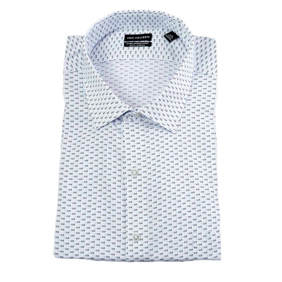 Description Give a stylish and sleek new look to your work attire with this Mens Big & Tall Van Heusen® ultra wrinkle free stretch dress shirt. Long sleeves with button...