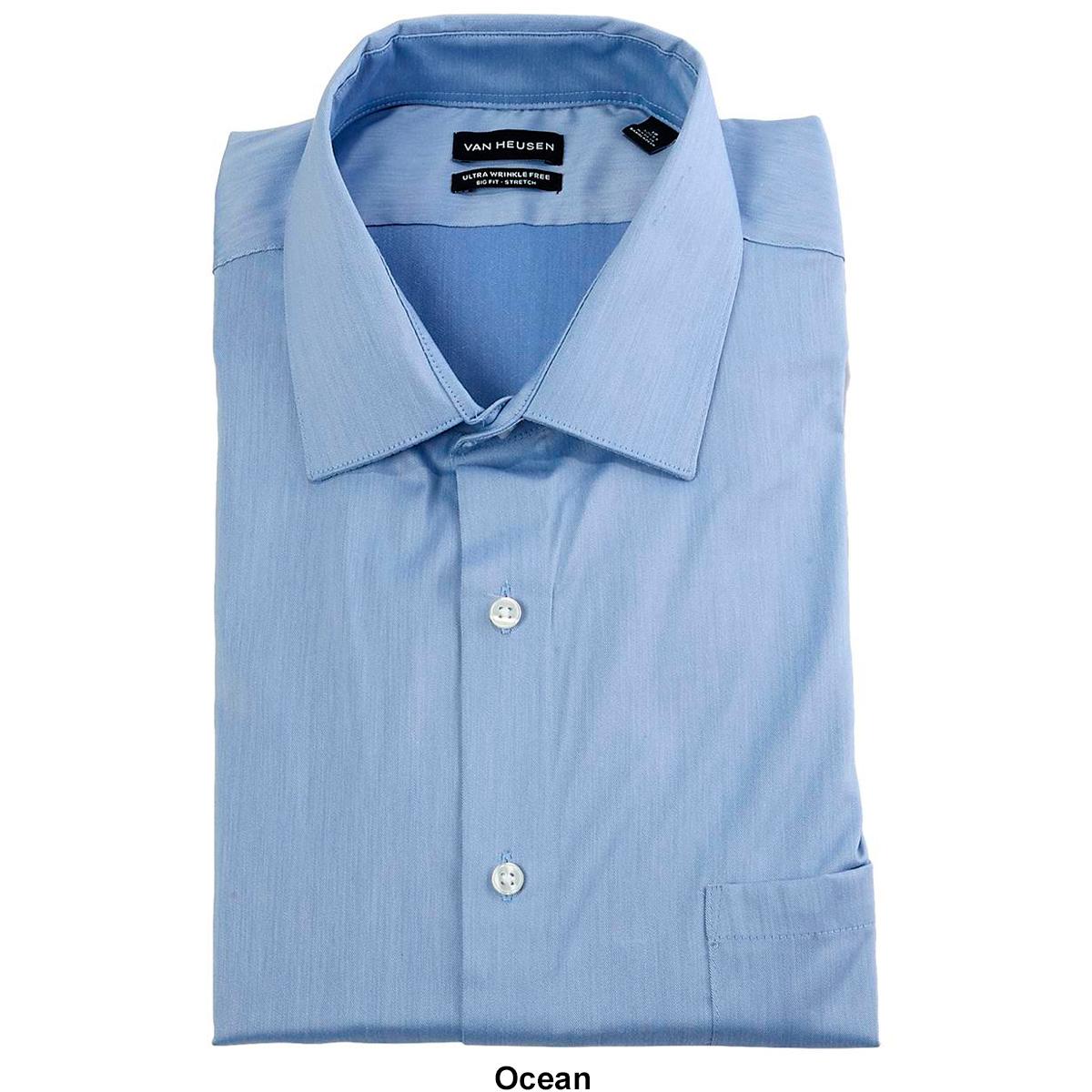 Description Give a stylish and sleek new look to your work attire with this Mens Big & Tall Van Heusen® ultra wrinkle free stretch dress shirt. Long sleeves with button...