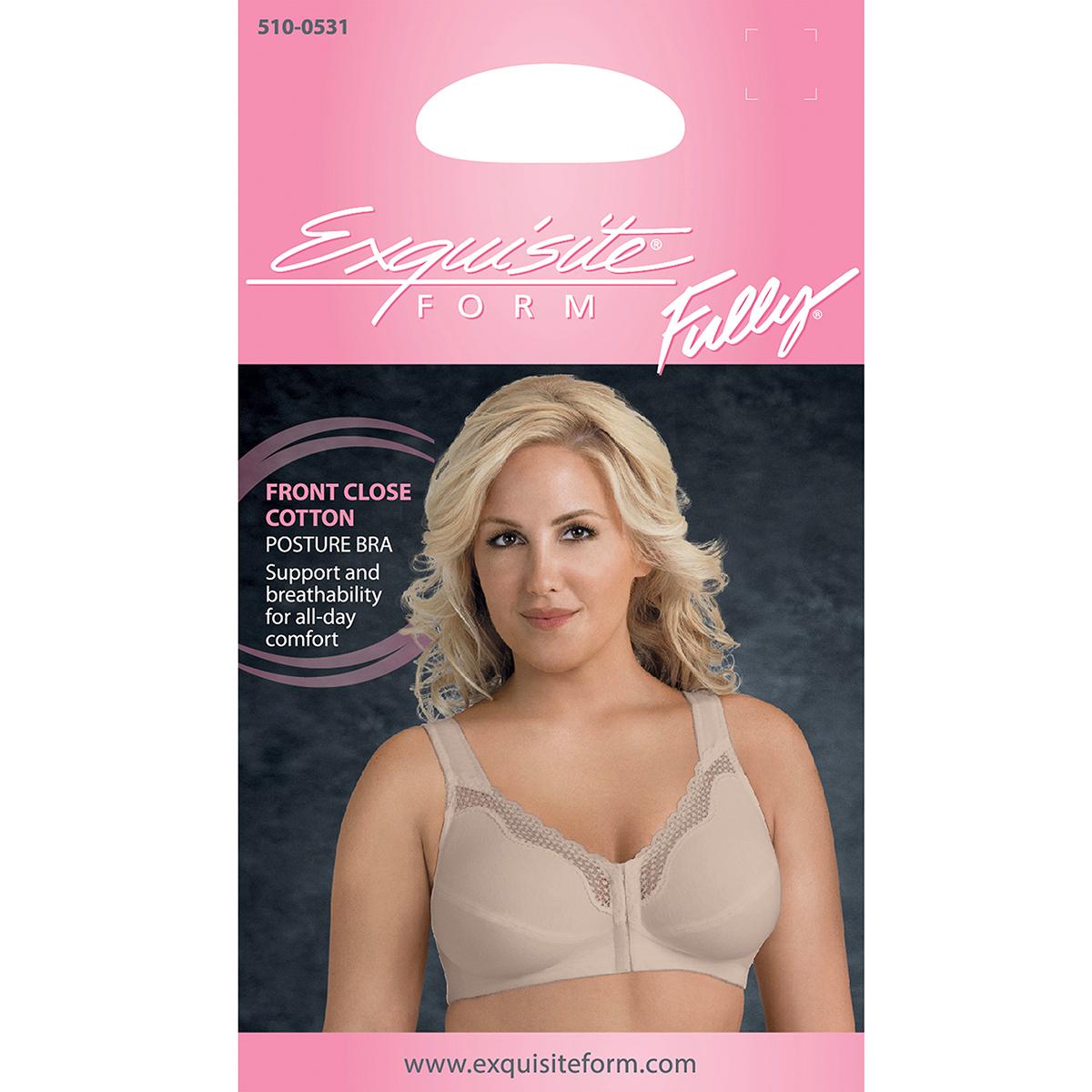 Description The Exquisite Form® Fully® Front Close Cotton Posture Bra with Lace. Makes getting dressed a snap. Hook-and-eye front closure is easy to close and stays flat for a...