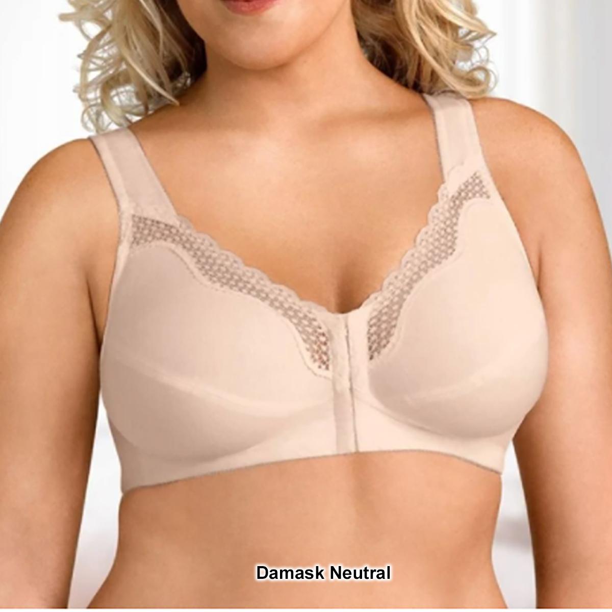 The Exquisite Form® Fully® Front Close Cotton Posture Bra with Lace. Makes getting dressed a snap. Hook-and-eye front closure is easy to close and stays flat for a seamless look. Wirefree with 100% natural fiber cotton cups ensures all-day comfort. Thick comfortable straps help alleviate shoulder strain and prevent slipping. Gorgeous lace detailing along the top of the soft cups give the perfect feminine look.