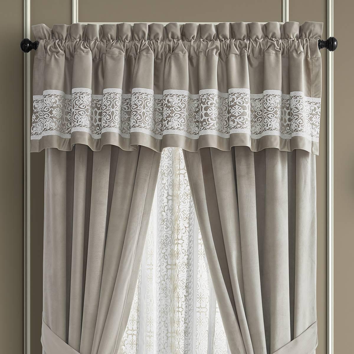 Description This J. Queen New York Opulence window straight valance will give your room an elegant upgrade. It features a velvet linen color base fabric, with an engineered...