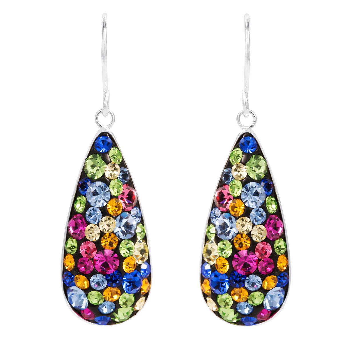 Add a colorful touch to your look eith the brass silver plated multi-color crystal drop earrings.