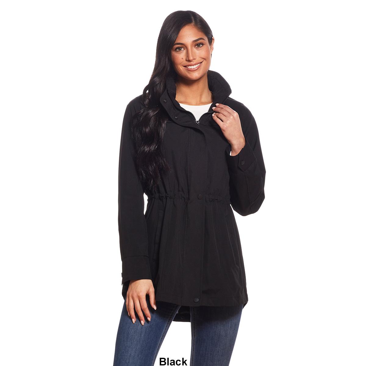 This Womens Gallery packable anorak jacket is a lightweight option to keep you warm this season. Featuring a hood with elastic adjusters, zip and snap closure, two exterior slip pockets, and synched waist.