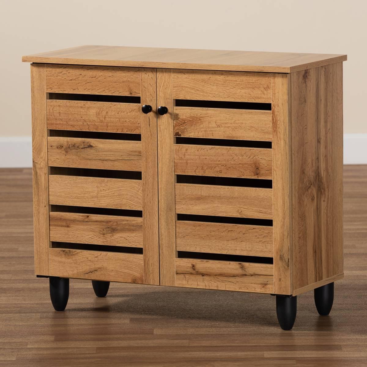 Baxton Studio Gisela Oak Brown Wood 2-Door Shoe Storage Cabinet