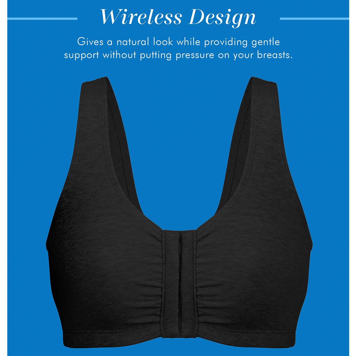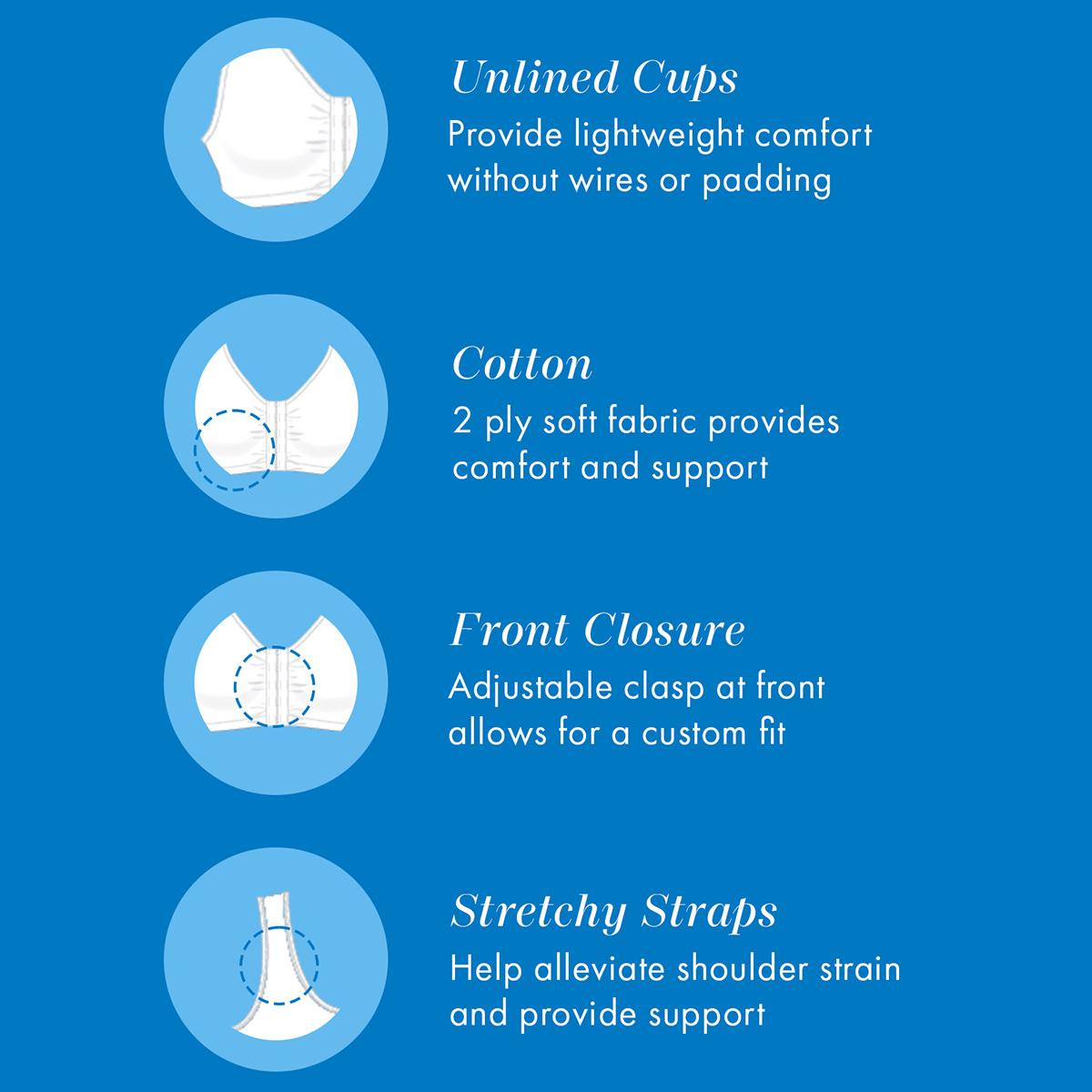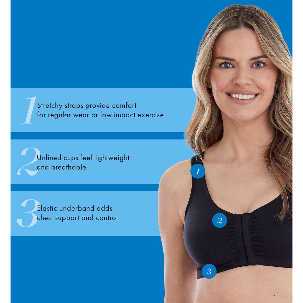• DAILY WEAR. Great to wear post-surgery as well as light exercise, this simple bra for women is built with unlined cups for lightweight comfort, and features ruching at the front for added shape.