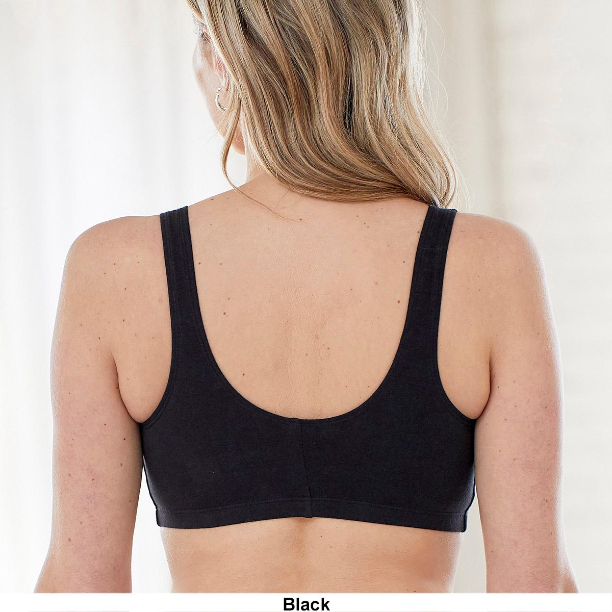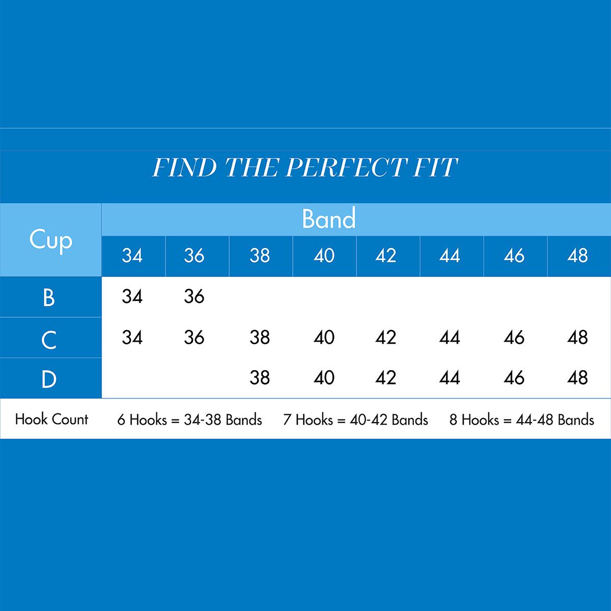 • CUSTOM FIT. Front hooks and elastic along the cups, sides and back provide a custom fit for your body type.