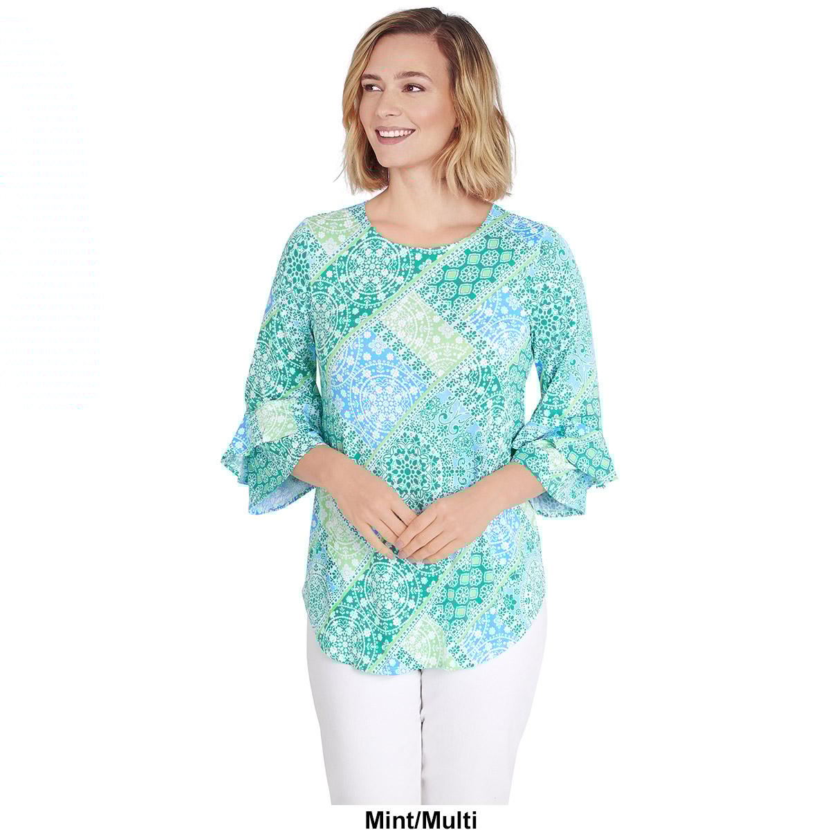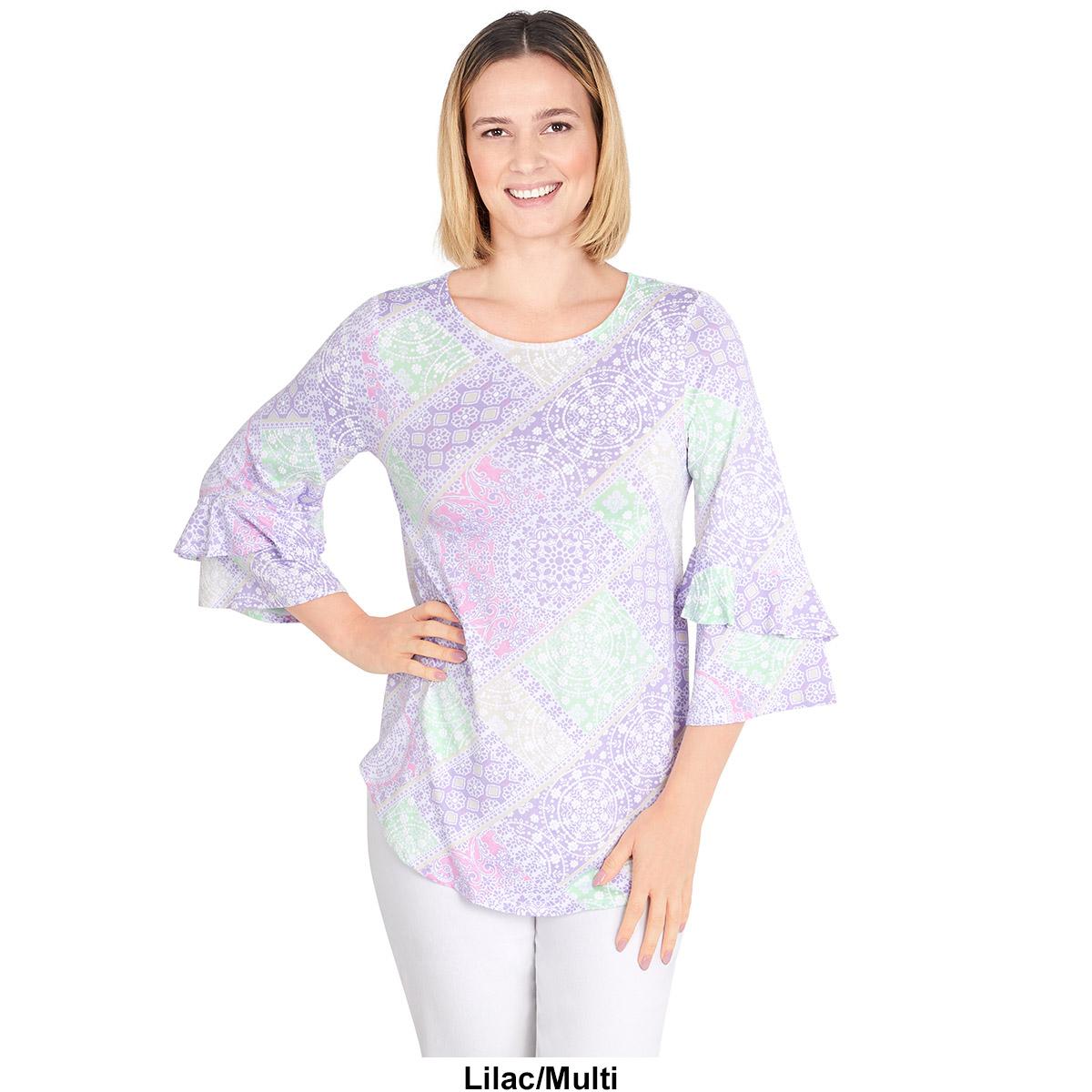 Description Update your look with this Petite Ruby Rd. Must Haves II diagonal bandana blouse. Sleeve Length: 3/4 SleeveNeck: Round NeckFlounce sleeve Care: Hand Wash, Line Dry...