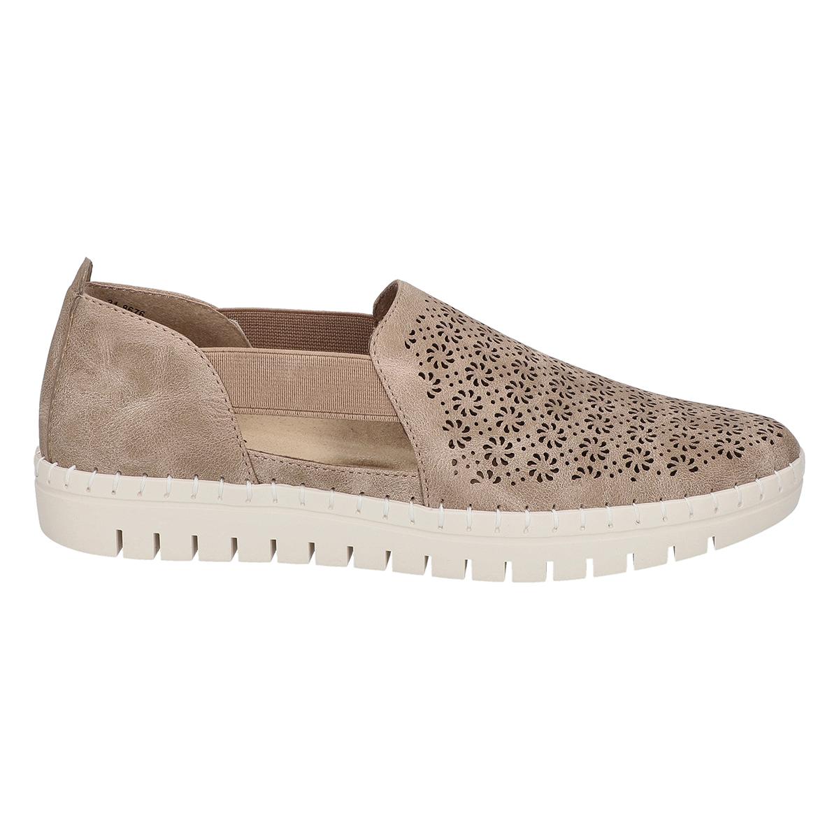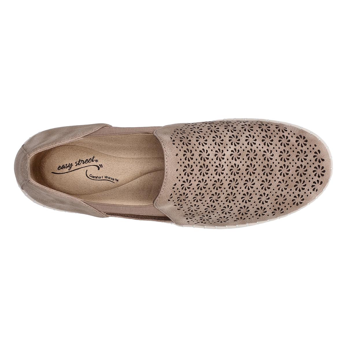 These fashionable Womens Easy Street megafresh natural fashion sneakers will make any outfit pop! Offering a nice stretch for easy on and off, a lightweight design to help you move easily, a laser cut-out design on the front, and ultra-light easy motion insoles for added comfort.