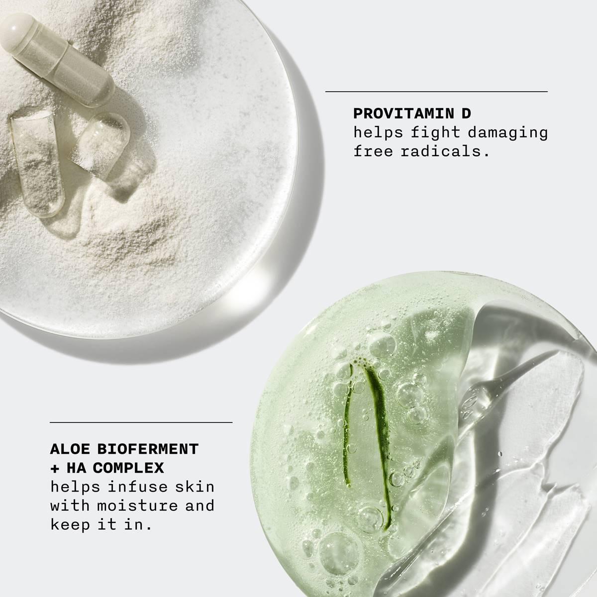 • This cloud-like cream with Aloe Bioferment + Hyaluronic Acid Complex and provitamin D penetrates deep into skin’s surface for all-day stabilizing hydration
