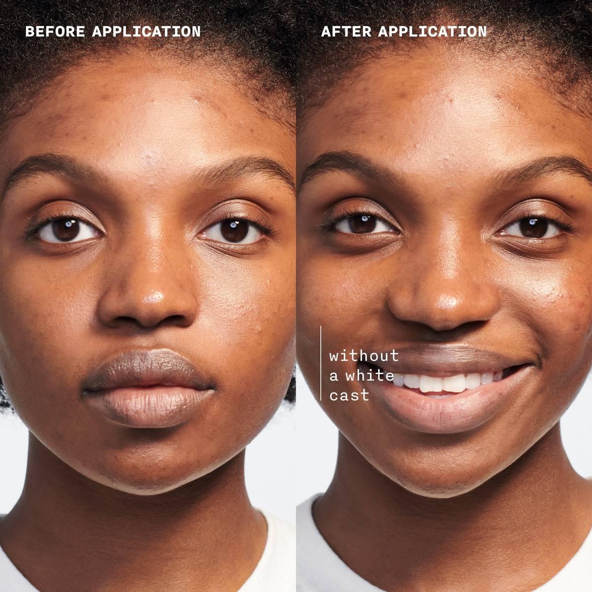• Looks opaque going on, blends in sheer. Without a white cast, residue, or stickiness.